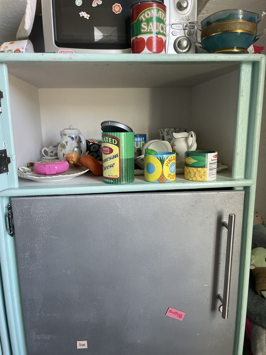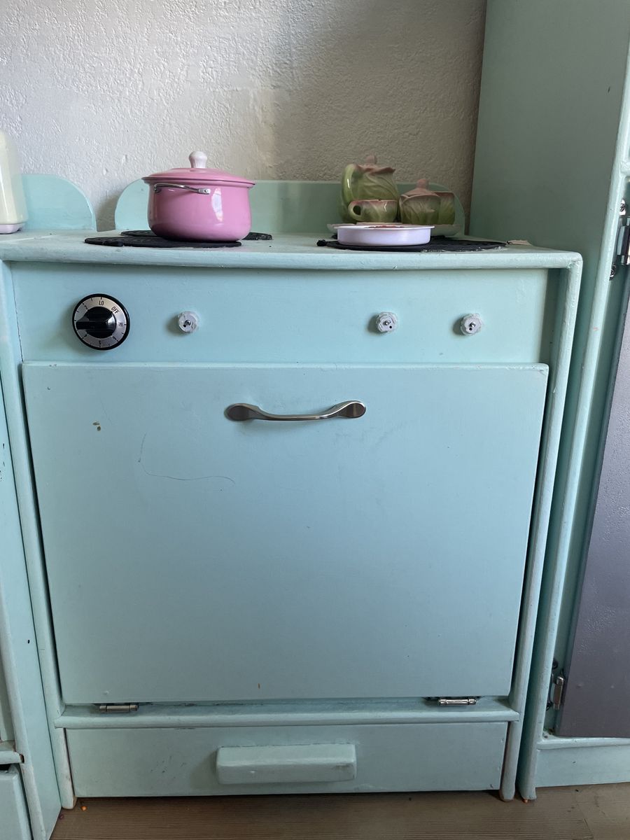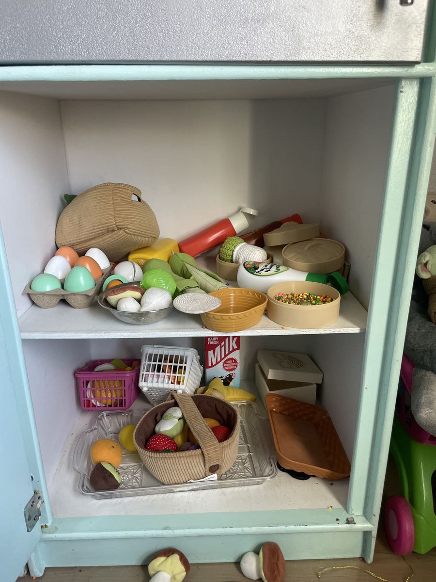 VenmoThis toy kitchen includes a sink, stove, and refrigerator. There is A TON of play food and dishes that come along with this. My kids are getting too old and have stopped playing with this, but it has been amazing for creative play for them.