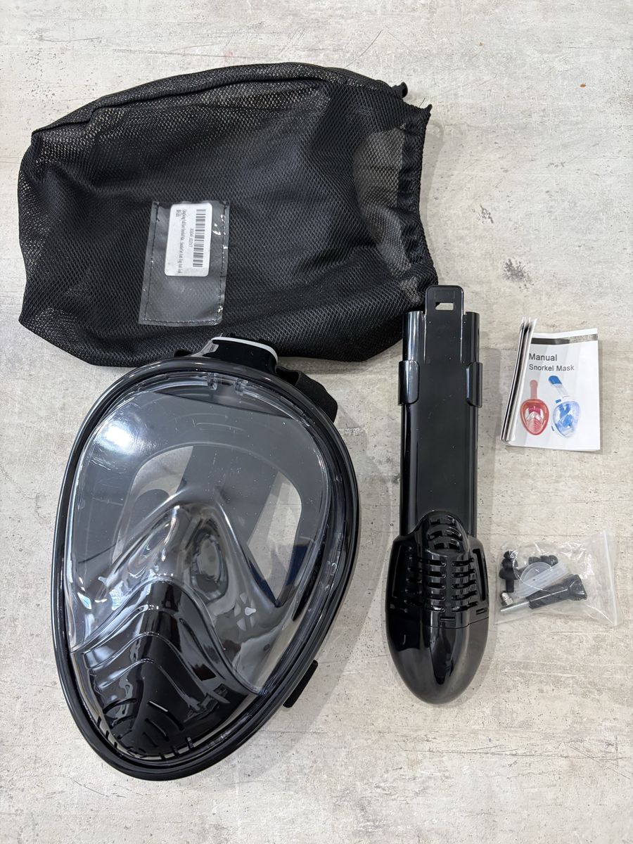 VenmoQing Song full face snorkel mask. Comes with carry bag, camera mount and instructions. Never used. Took it to the Caribbean but had bad weather and never got to use it. It is an adult size.