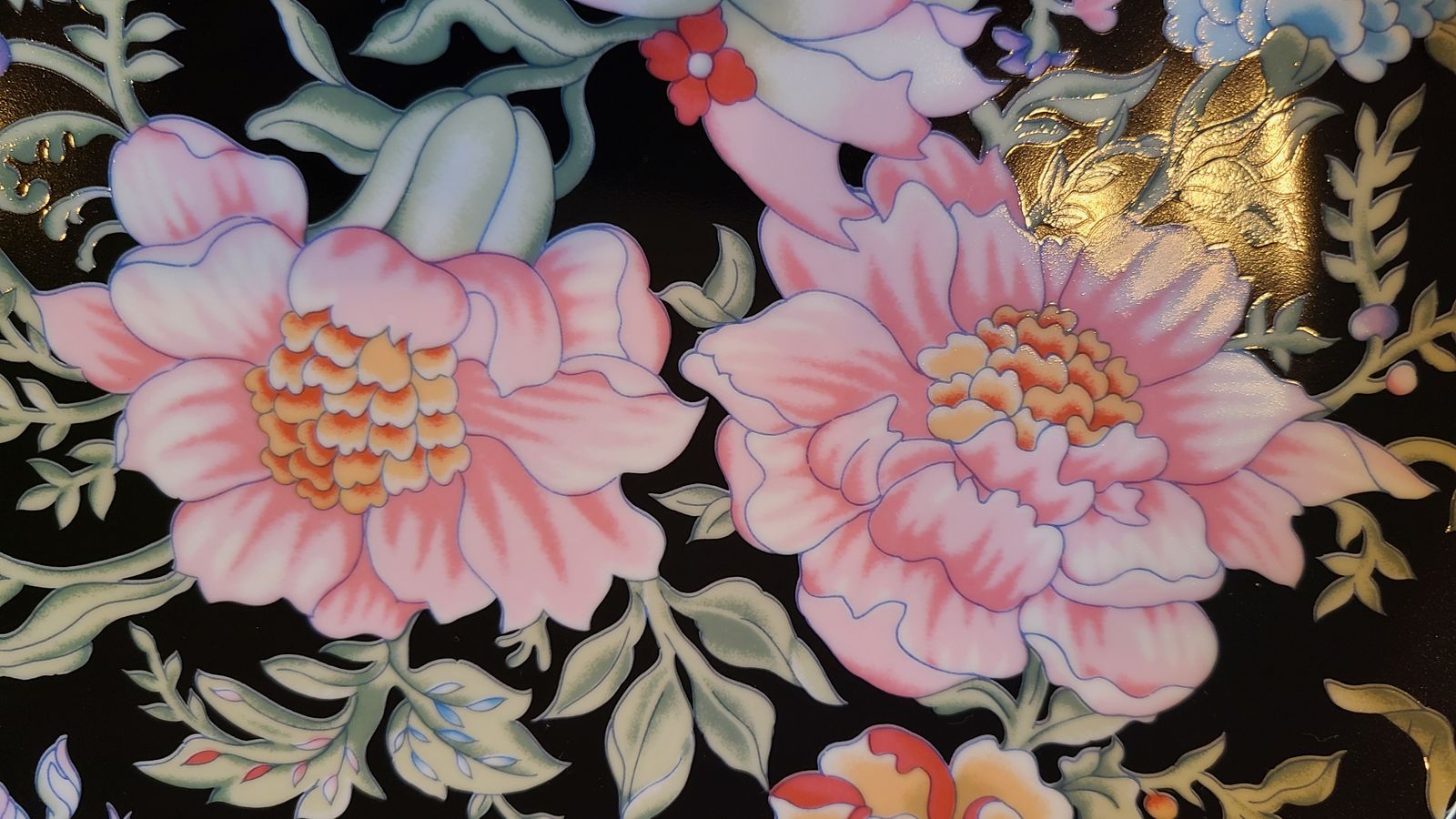Two beautiful floral Japanese plates, 12.5 and 10 inches in diameter. Great as tableware or decoration.