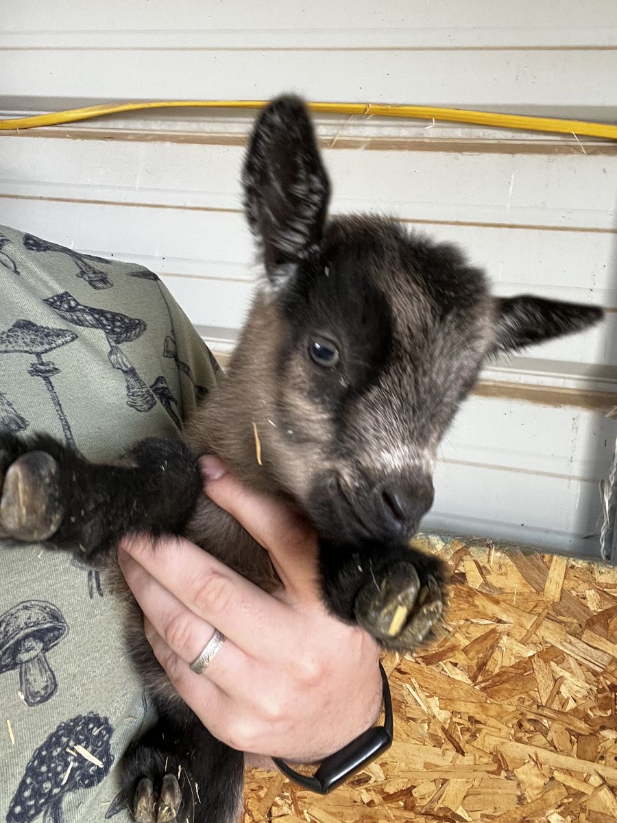 There are 2 doelings and 5 bucklings available. Doelings can go either ADGA registered for $300 or unregistered for $250. Some of the bucklings can go registered for $300, and some will only go unregistered for $100. Discounts if you purchase multiples, since goats really shouldn't be alone. There are bottle babies available now, or you can wait until they are weaning age if you prefer not to deal with bottle feeding. Some will be weaned in May, and some will be weaned in June.