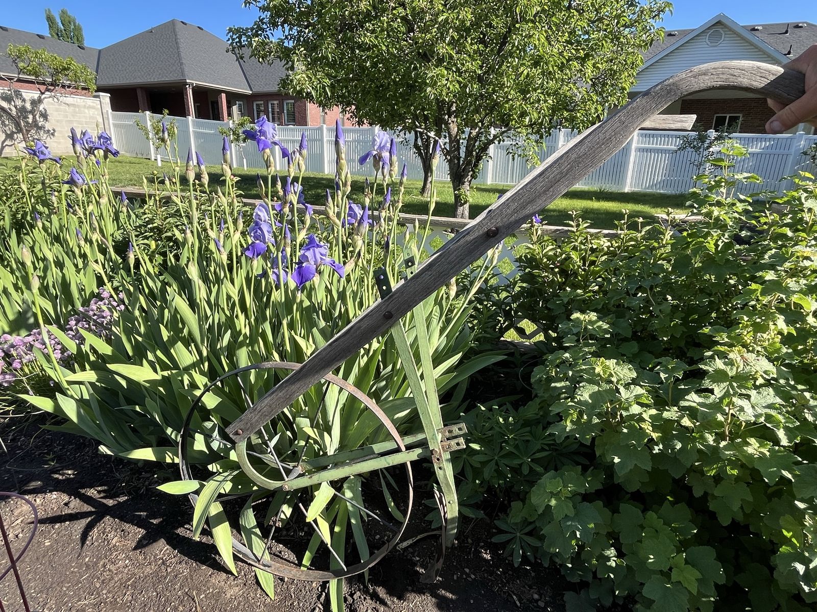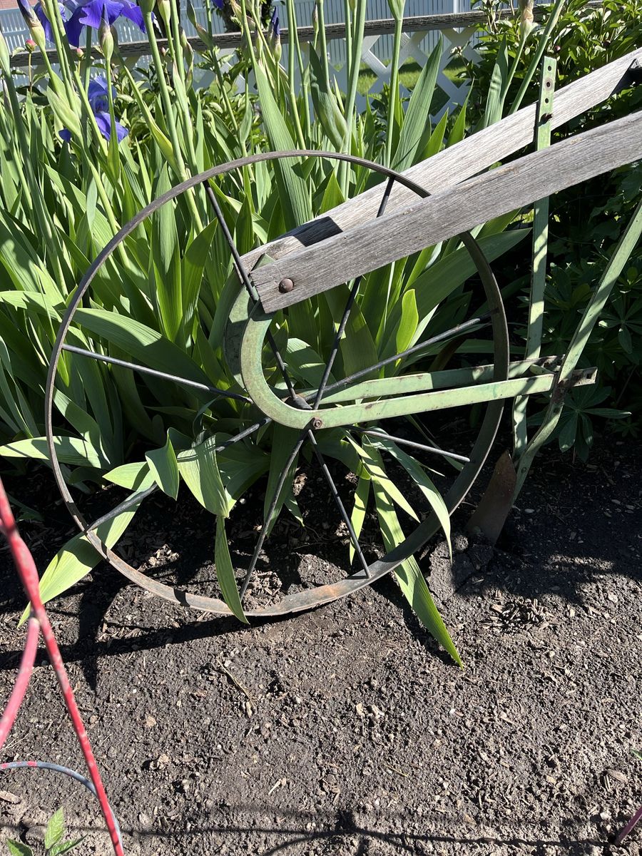 VenmoSpring is here and you are going will want this! This is a really, really nice plow. It comes with a plow on it that is two sizes. My pictures show the bigger side of the plow that is closest to the dirt. But this can be turned and you could use the smaller top of the blade. Which ever size of garden row you want, you choose. I used the bigger side to dig up a row so I could plant potatoes. It also comes with a an extra attachment, a harrow. This is used to break up the dirt and remove weeds. This plow is also adjustable in height. It is hard enough to find one of these cool old plows. But to find one with the extra attatchment and a reversable plow is very unusual. The handles are wooden and are 22 inches across. The wheel is almost 2 feet across. The metal still shows most of it's original green paint. Overall it is about 51 inches long. This would be a beautiful display piece. But, it was made to use and you could use it. No trades. Price is firm.