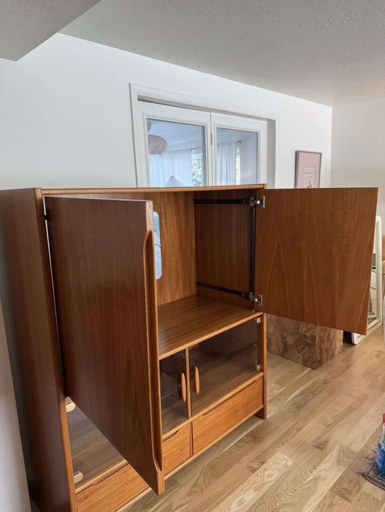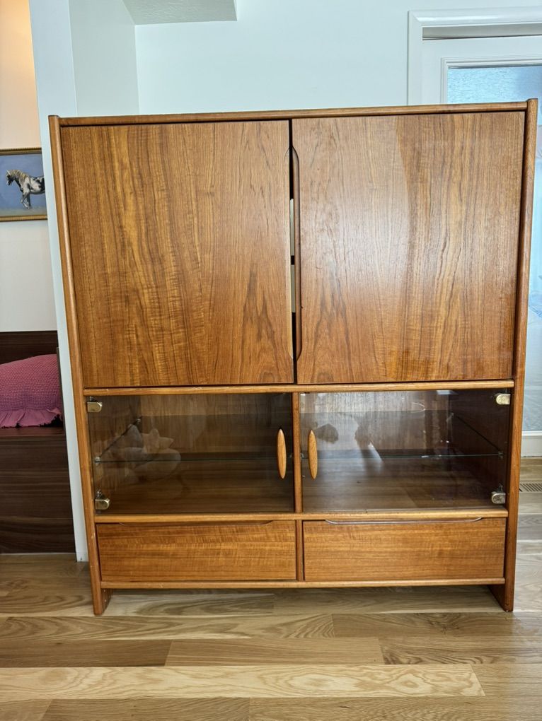 Gorgeous vintage teak tv console. In great condition. Marking says “Made in Denmark”.