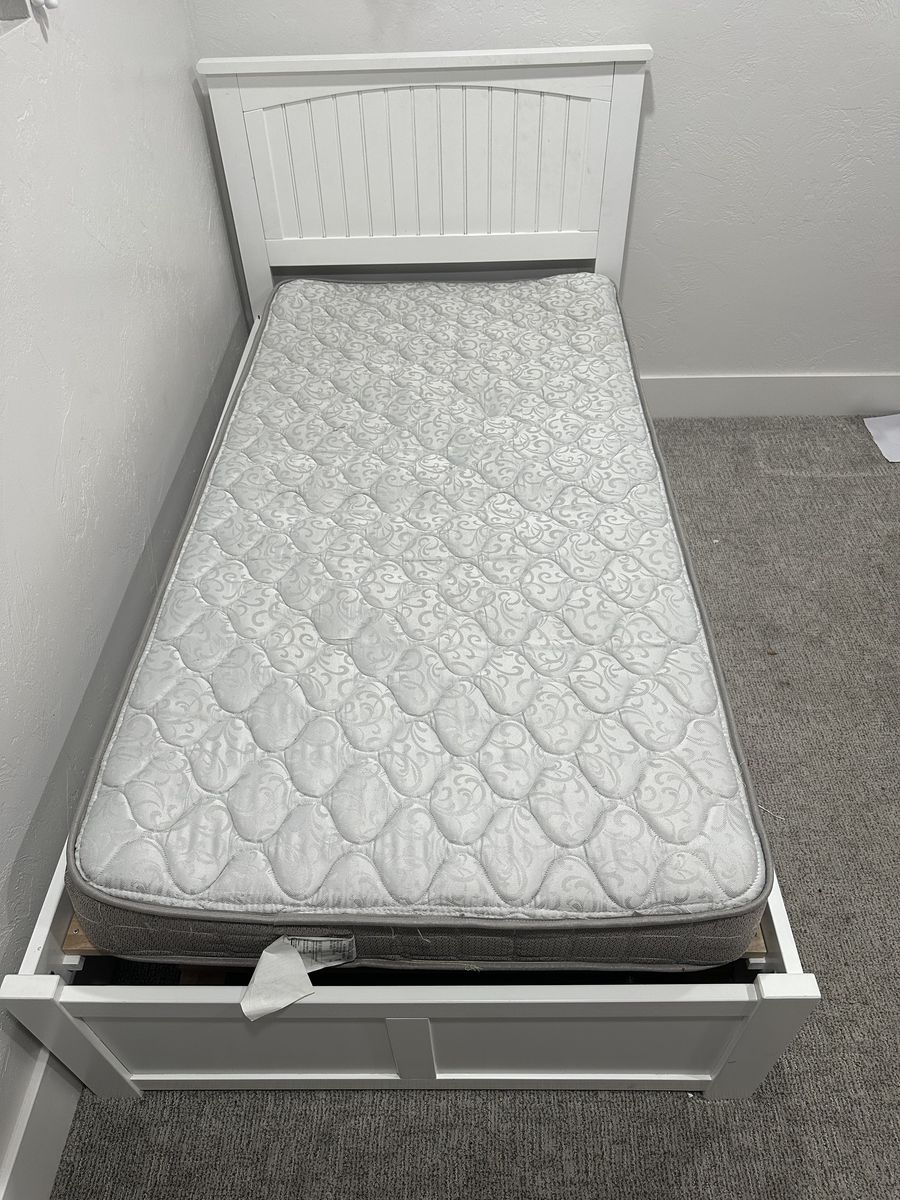 Venmogreat condition kids sized twin bed with trundle and 1 new mattress. I upsized my kids bed and this is no longer needed. The mattress was always in the trundle portion and was never used. Text preferred 435-660-1817. Could potentially deliver if close to provo.
