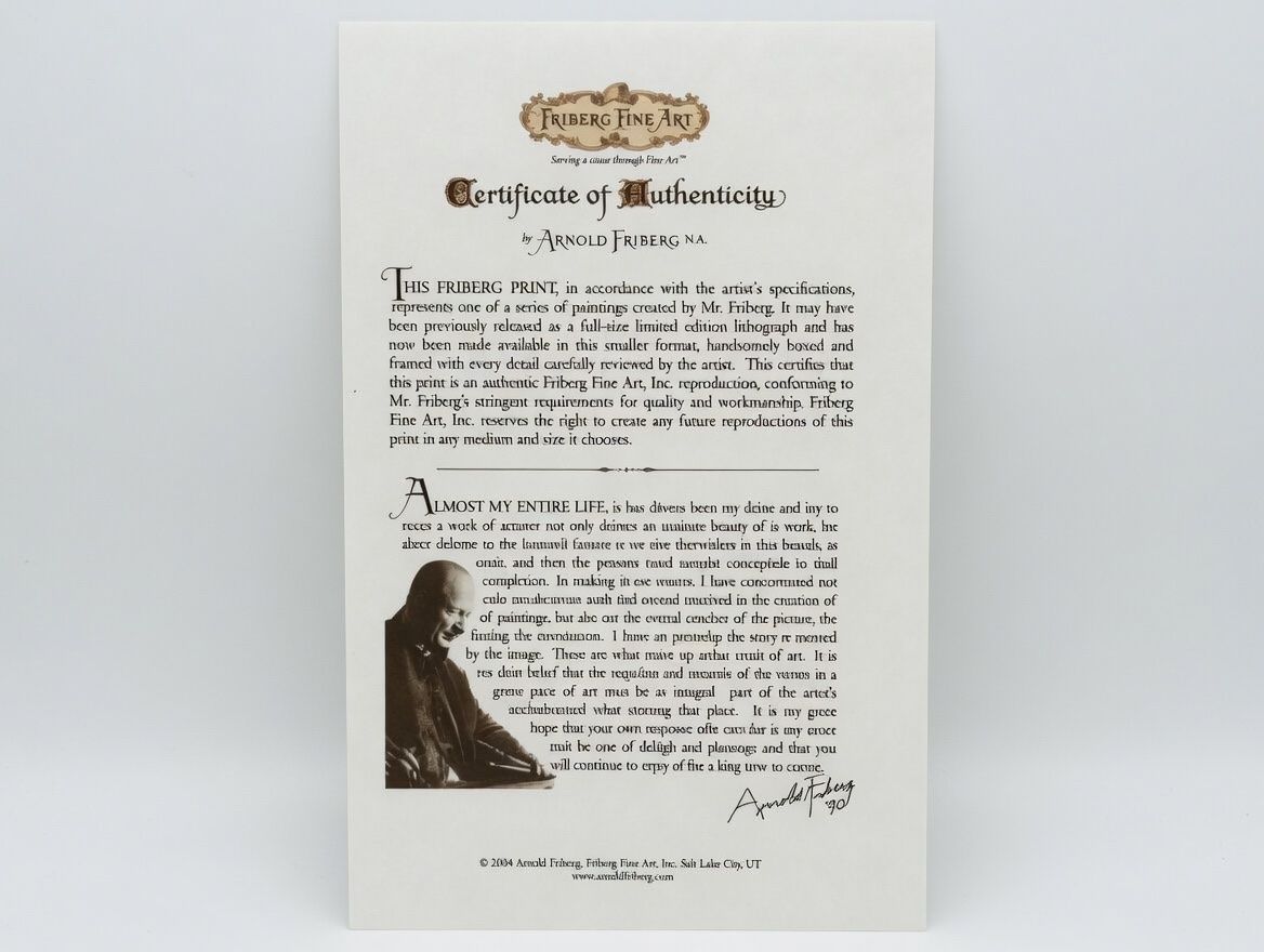 Beautifully framed in a rich dark wood frame with quality matting Includes the original Certificate of Authenticity from Friberg Fine Art Like new condition Ready to hang — perfect for home, office, or as a meaningful patriotic/religious piece