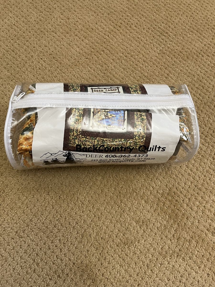 VenmoThis is a complete new kit. I only opened it to get pictures of the materail. Finished Size is 44 inches x 63 inches. Fun material with a log cabin, lake and deer. This was put together and sold at a quilt shop. Must see! In a non smoking home. Price is firm.