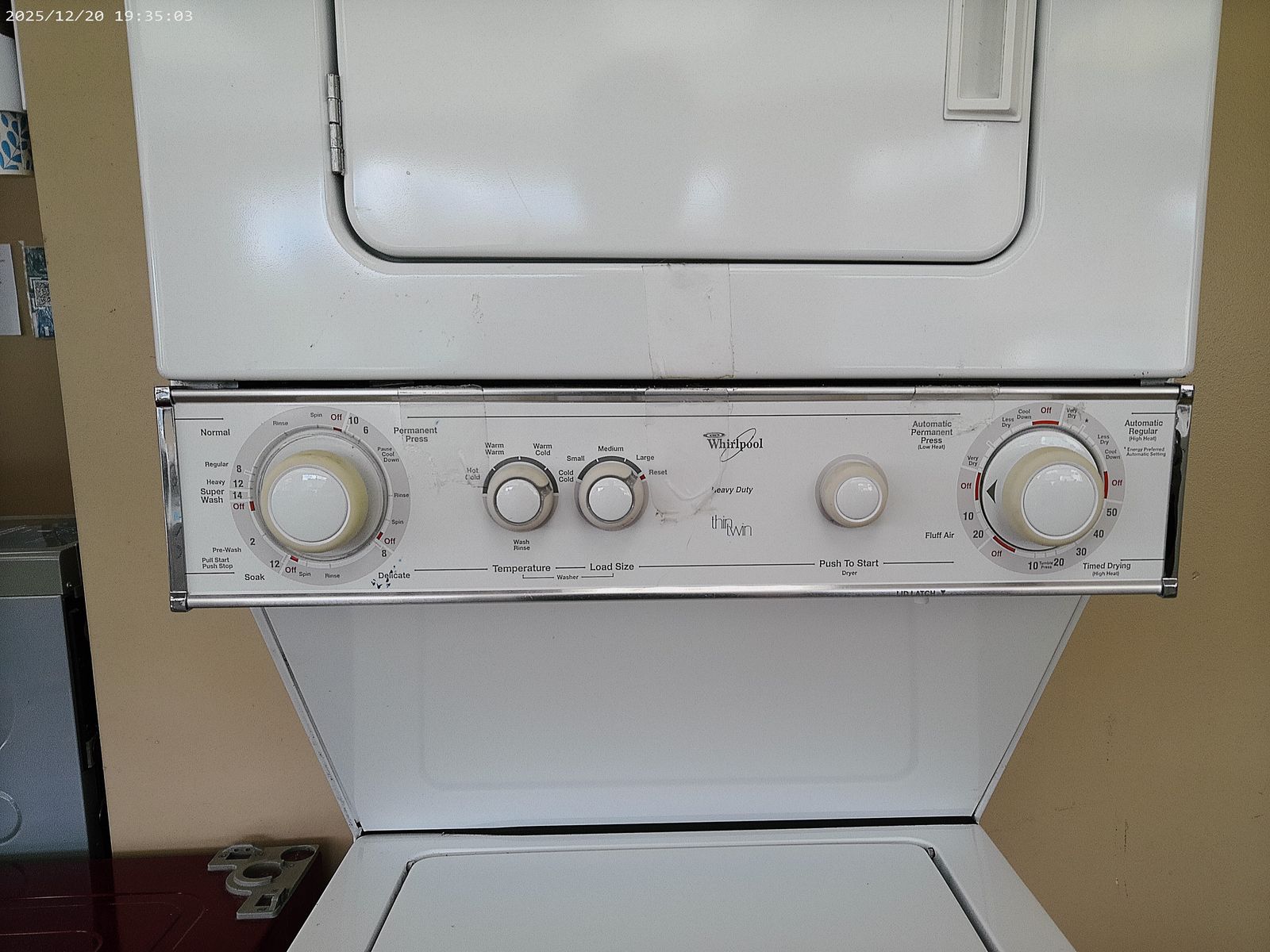 Whirlpool Top Load 24 inch wide stacked electric washer/dryer in excellent working condition. Tested, cleaned, ready to go.