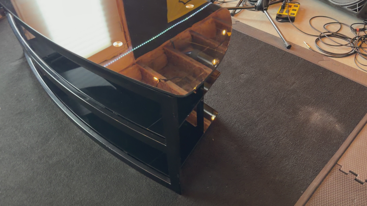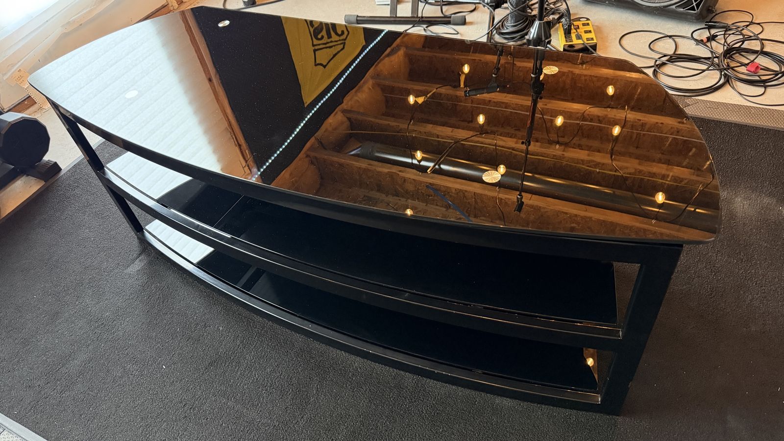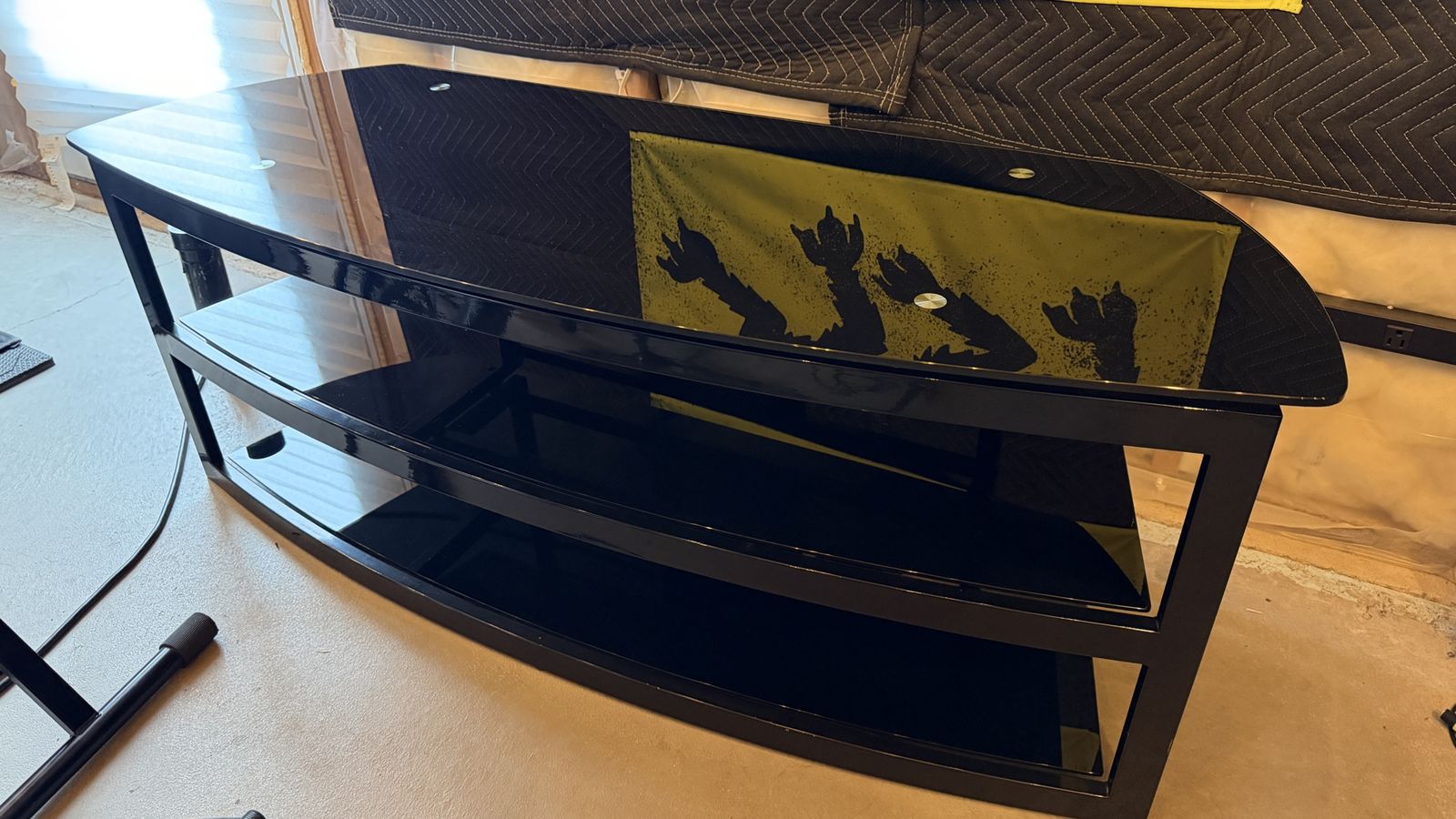 VenmoUsed Black tempered glass 3 shelf tv stand