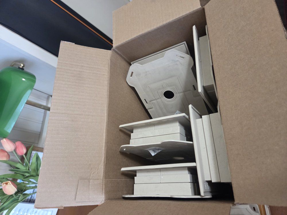 Venmo8 new vinyl electrical trim box mounting boxes...6 outlet boxes, 2 porch light boxes.. almond color... all for 50.00 new.. in Clinton no holds...