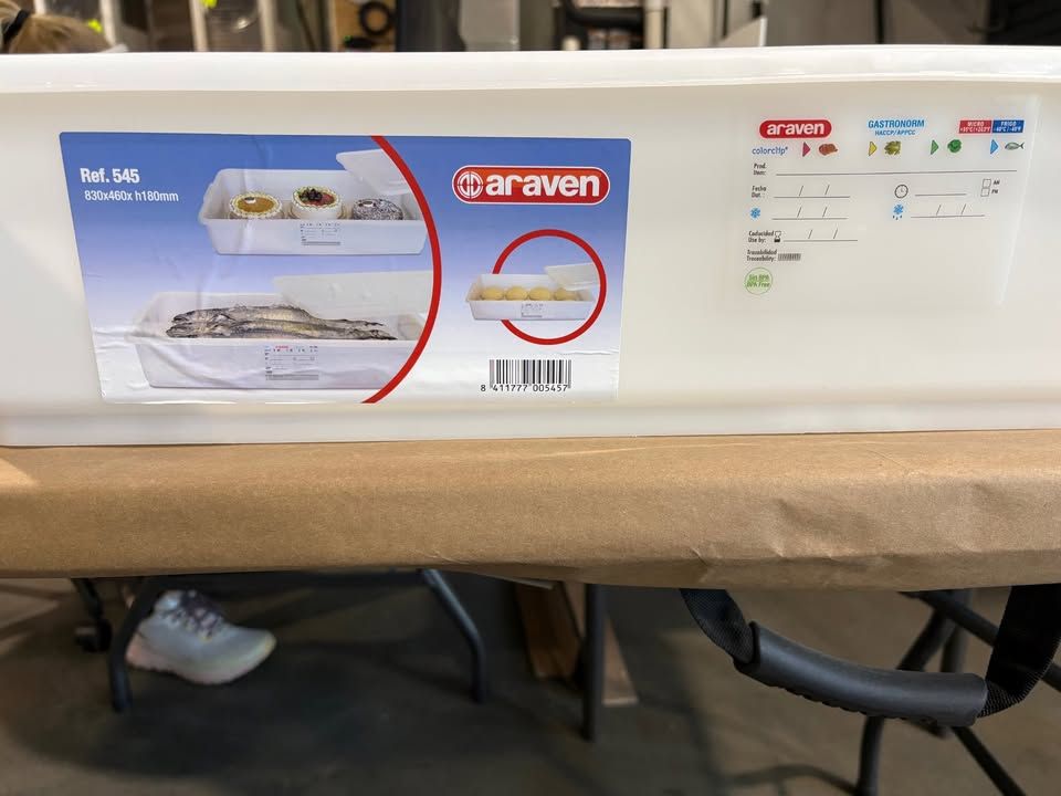 42.2 qt. 32-5/8" x 18-1/8" x 7-1/8" with lid Colorclip coded stackable permanent label side handles with fasteners dishwasher safe high-density polyethylene translucent HACCP compliant