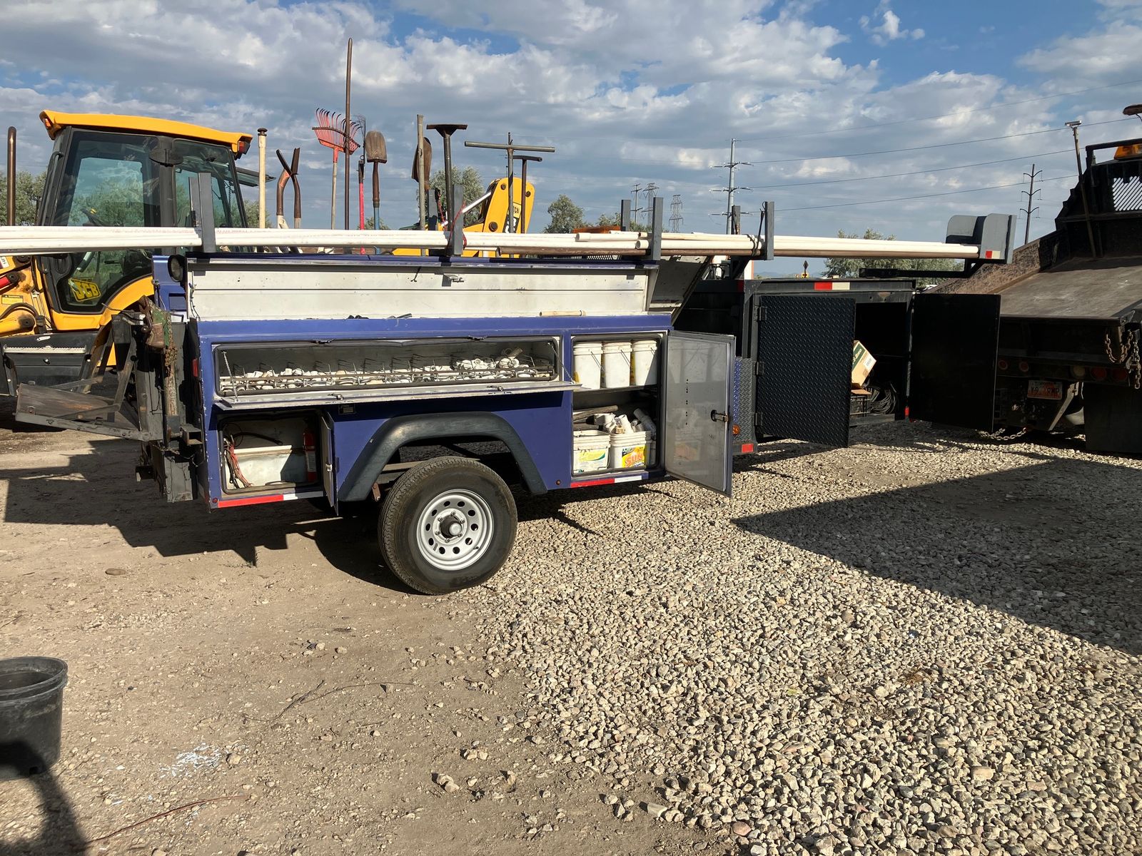 23' long. It was custom built to carry the 20ft lengths of pipe and have the fittings in easy-to-use outside cabinets.
