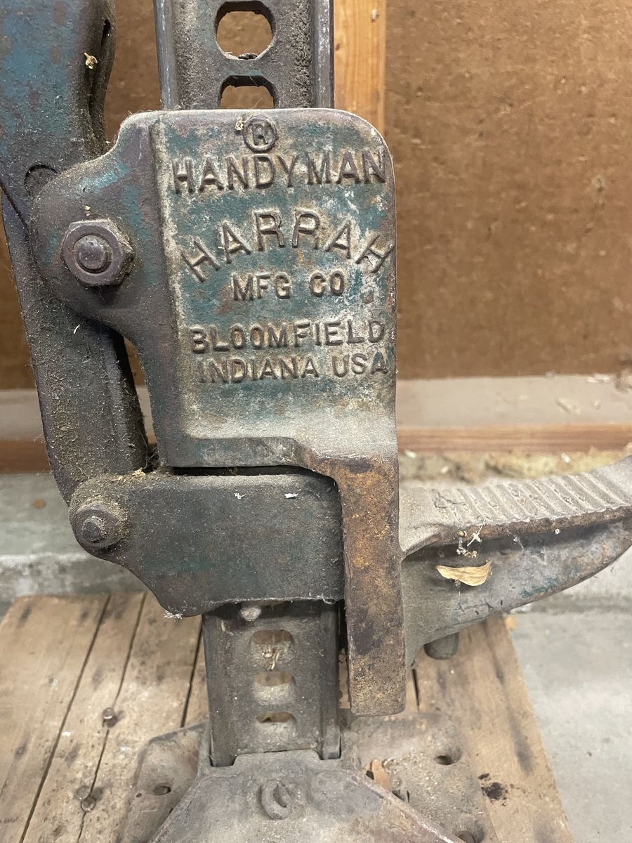 Handyman jack, Harrah MFG, with wood base for soft dirt/sand