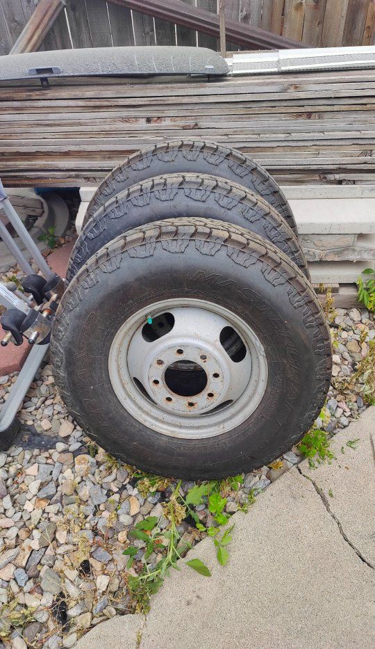 Tread: 15/32 (new tread is 16/32) This listing is about the tires, the wheels are a bonus. Do your research and you'll find this is an amazing deal. These were off my Dually.