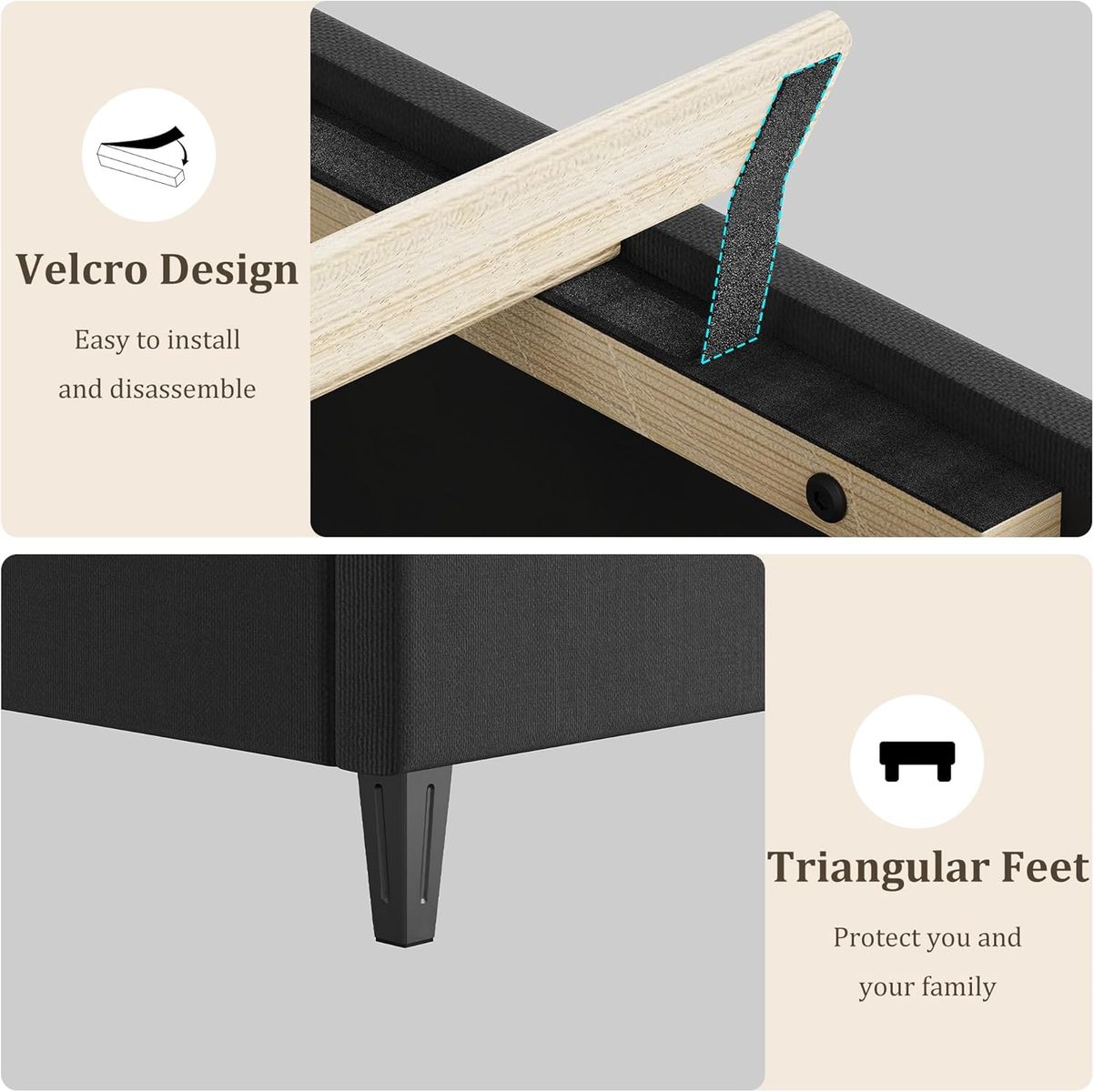 Adjustable Headboard: Adjustable upholstered headboard ensures a kingy connection with the mattress, which is more stronger and can prevent your mobile phone or other small things falling down to the floor.Fit perfectly for a mattress of 8.3-12.2 inches