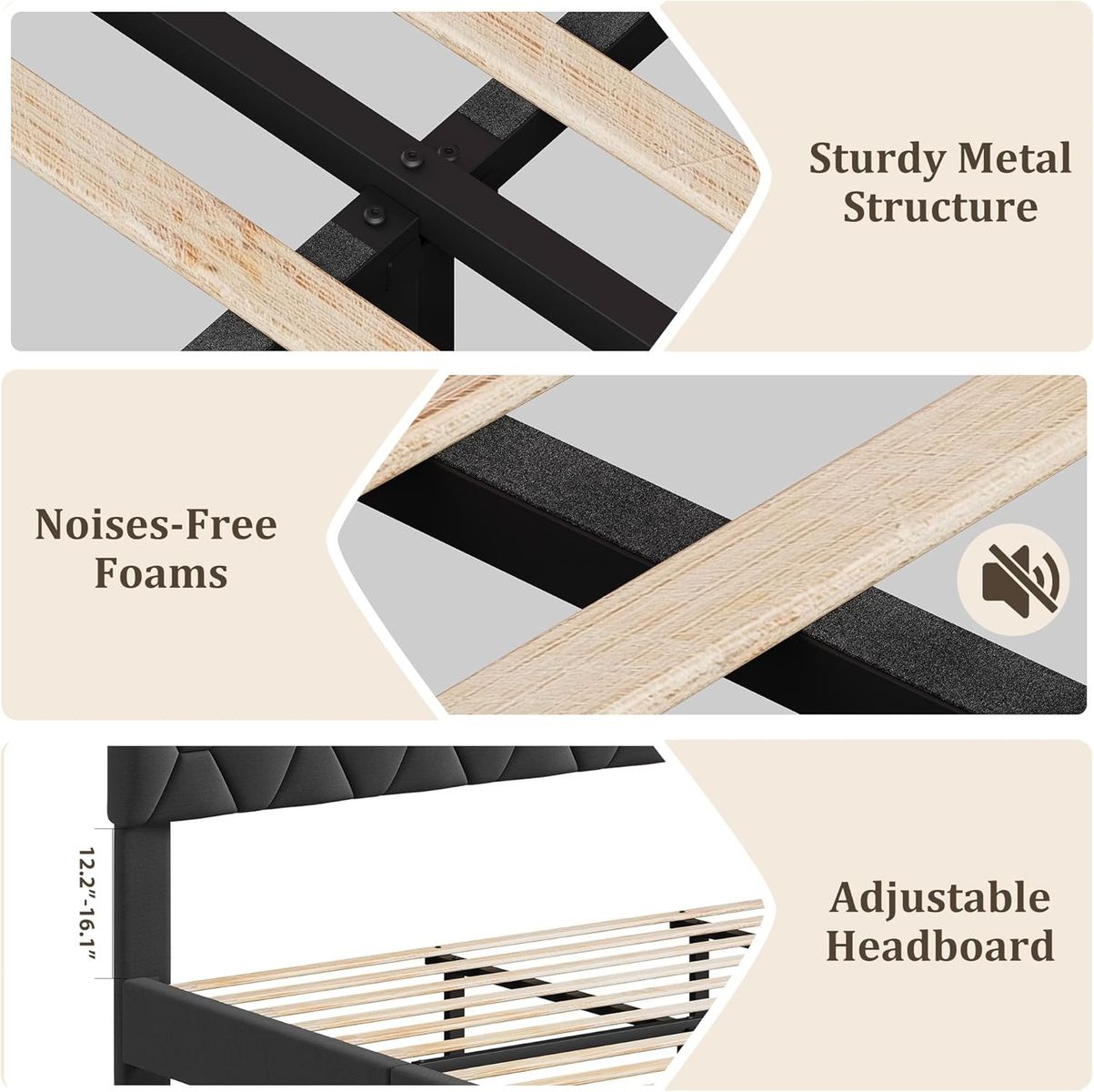 Modern Elegance: Featuring a diamond block design on the headboard, the upholstered bed frame combines contemporary style with plush comfort. And wide headboard not only adds comfort but also completes your contemporary aesthetic. Its foam-padded upholstery offers supportive comfort while relaxing