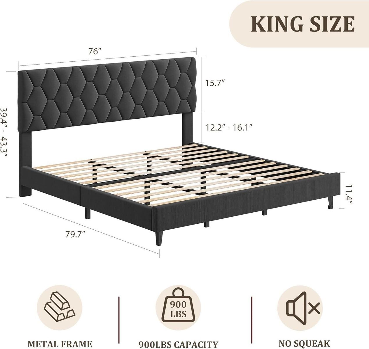 Retailer's Title: GAOMON Grey King Upholstered Bed Frame with Headboard, Heavy-Duty Platform Bed Frame with Strong Wood Slats, No Box Spring Needed/Easy Assembly/Noise Free