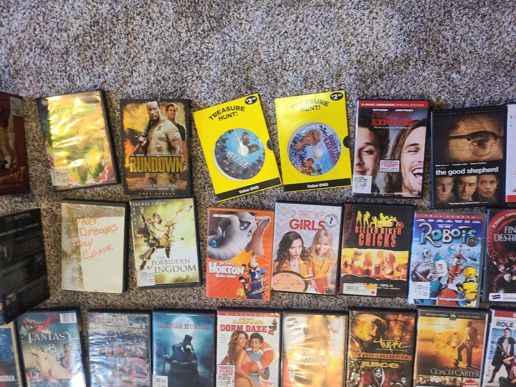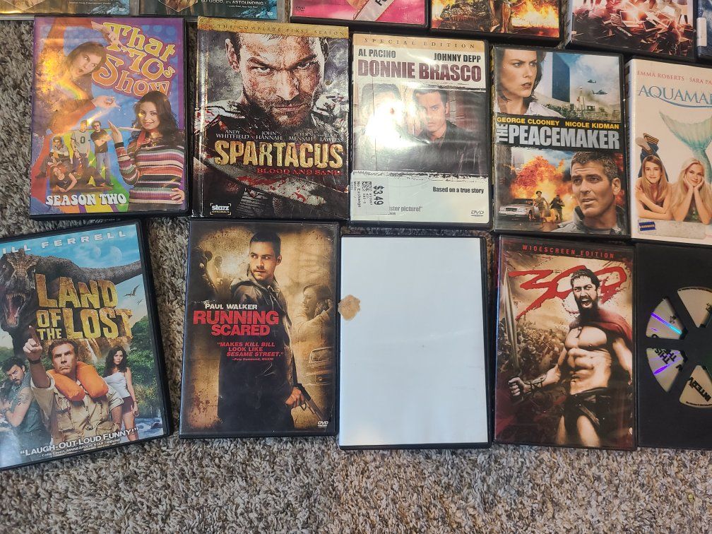 144 titles DVD movies and TV shows. I listed as many as I can, not interested in separating, take ALL for $30!
