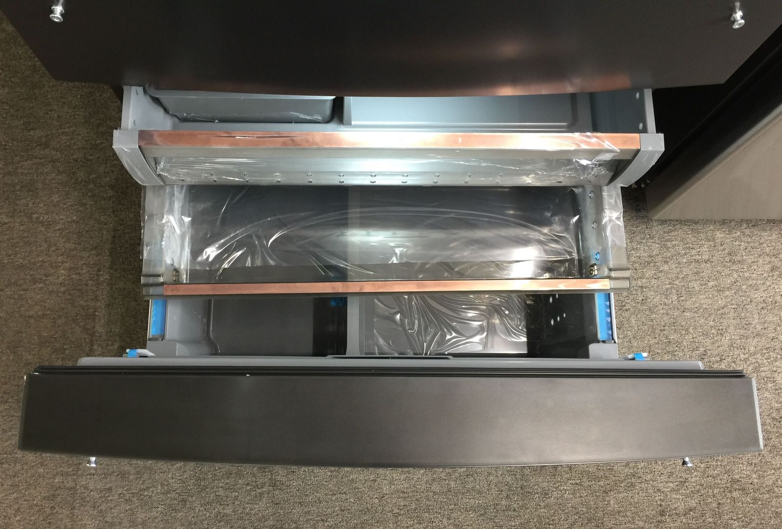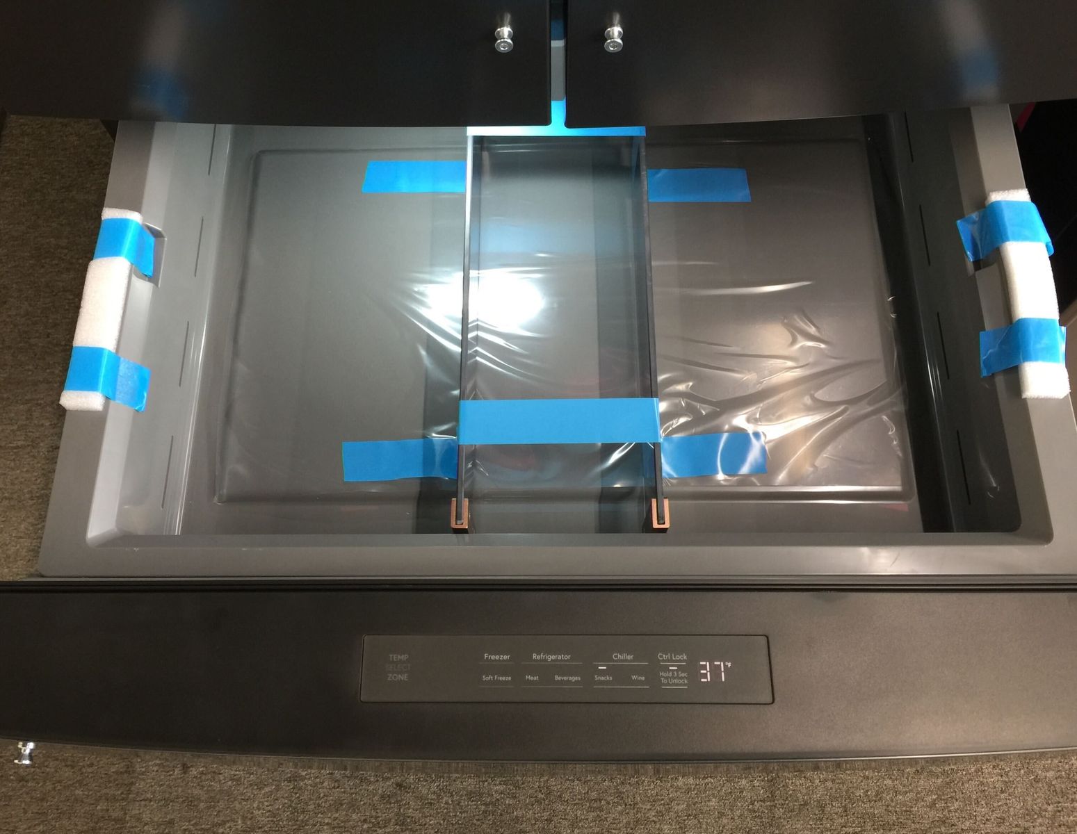 VenmoCafe CGE29DP3TED1 4 door standard depth refrigerator in excellent condition. This unit is missing the handles for the doors and drawers but they can be easily replaced using the model numbers in the photos. It also has some scratches on the door and side, but otherwise is a new unit and is in proper working condition. WiFi enabled and is compatible with Alexa, Google Assistant, and the SmartHQ app Convertible drawer above the freezer drawer with 5 different temp settings for different needs Autofill pitcher right in the door with a water filtration system