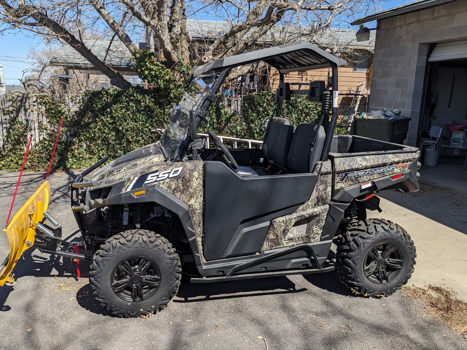 2023 Massimo T-Boss 550 with plow attachment. One owner, excellent condition - only 23 engine hours. 4wd, dump bed, front windscreen. Street legal. $ 9000 OBO. Weekend showings only. Certified or Cashier's check only.