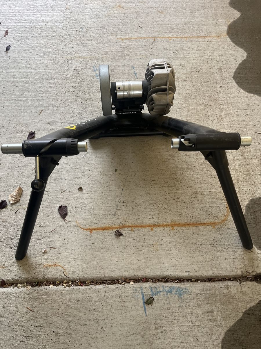 VenmoSolid trainer for indoor bike workouts. Works great with most bikes and allows you to be consistent with adverse weather outside. Folds up and easy setup.