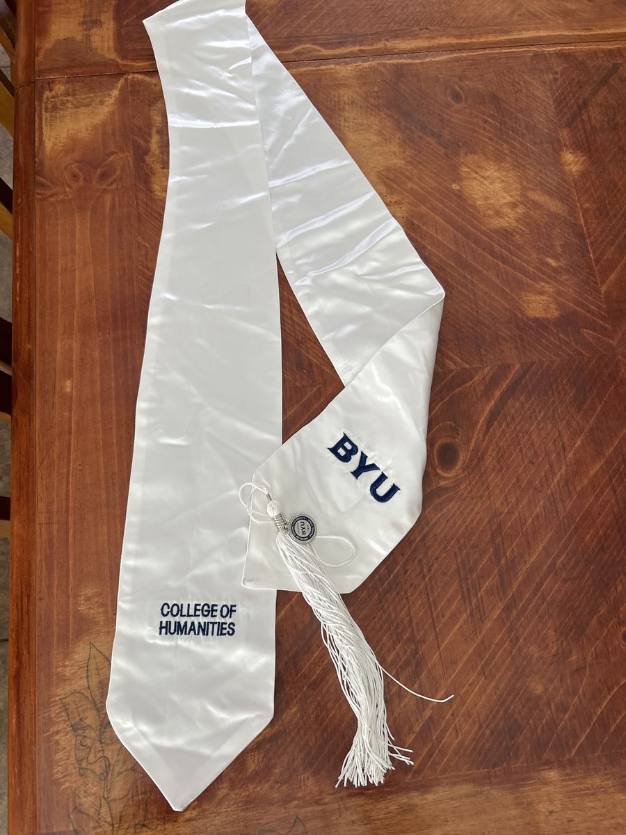 VenmoBYU College of Humanities Graduation Stole (we will iron it) and a white (academic) BYU Tassel. Was used once. $10 for the Stole $5 for the tassel. Pick up in Woods Cross, or can arrange for a pick up in Provo.