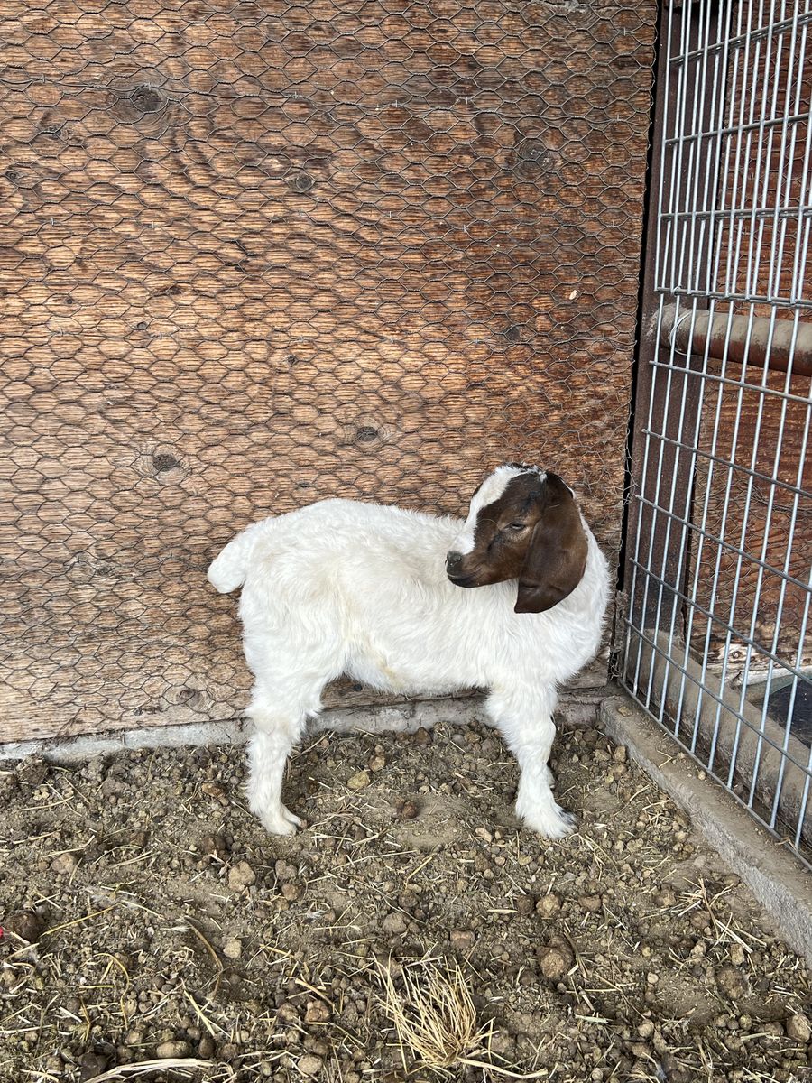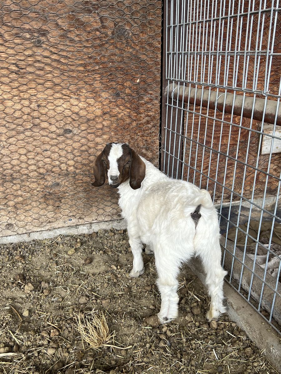 I have one bore buckling goat for sale. He is a purebred boer goat, no papers. Both parents are on site. He is 10 weeks old. Great genetics, muscle build and color. You can buy them for whatever you would like, a 4H project, show goat, pet, weed eater, meat or breading. No slater on site. Currently eating alfalfa hay and is right to wean. He is intact but can still be made a wether. Call or text with any questions at (801)367-1122. First come, first serve. Cash only