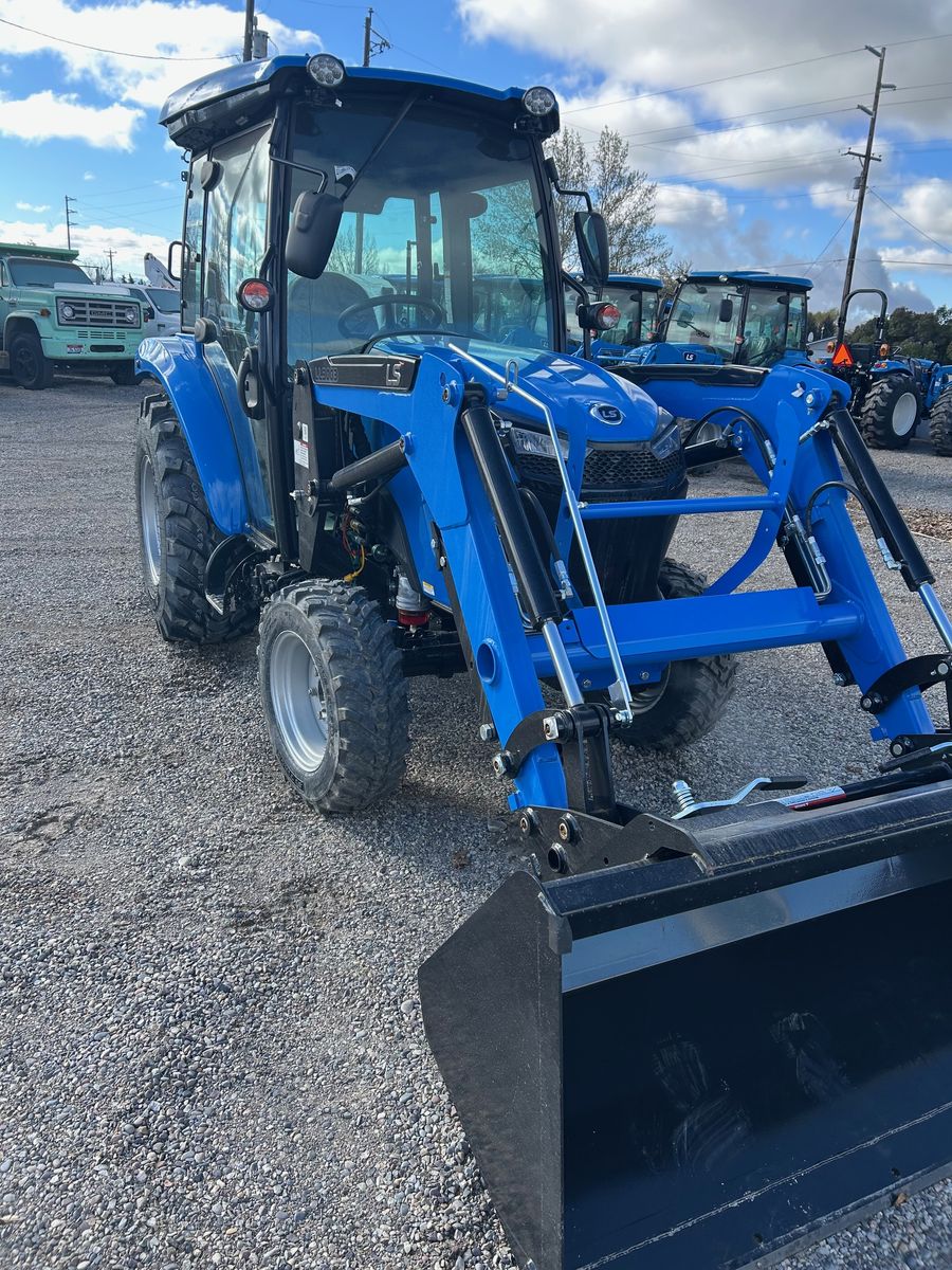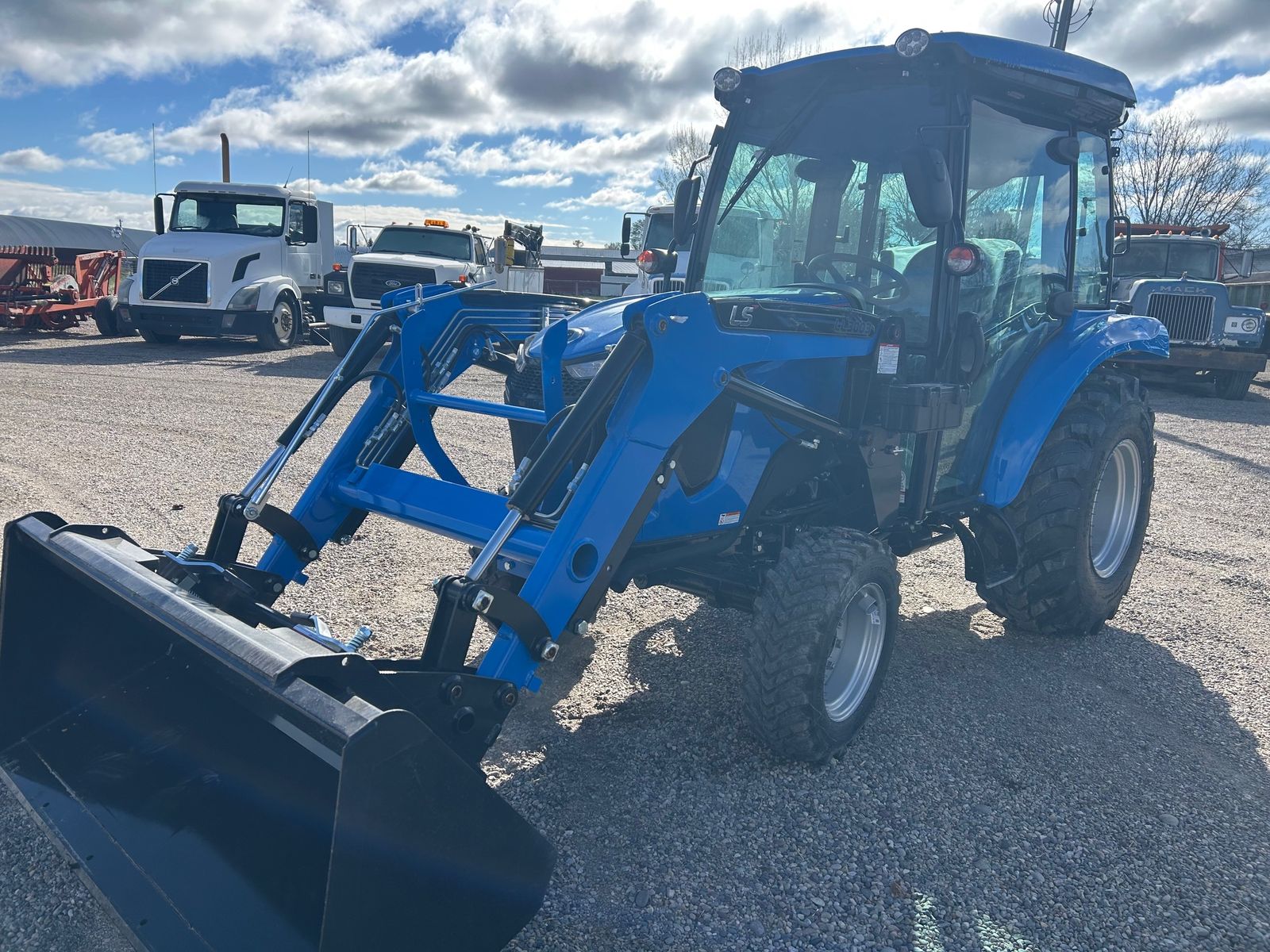 32hp tractor with loader. This has a hydrostatic transmission. Yanmar diesel engine. Loader is rated at 2500lbs lift at the pins. Hydrualic remote in the back. Three point hitch. 540 PTO.