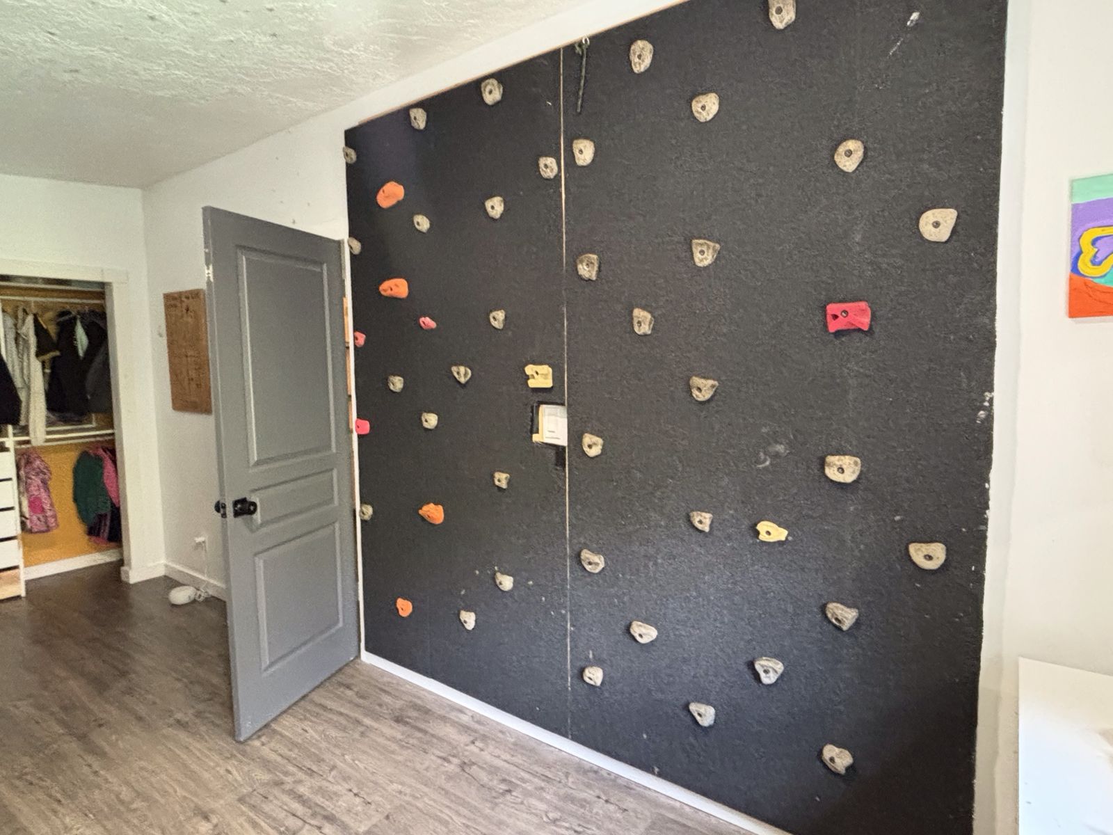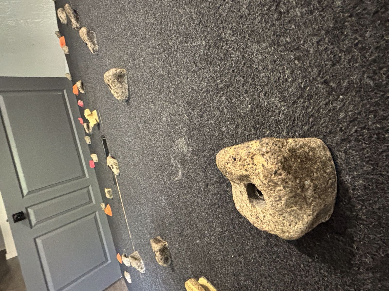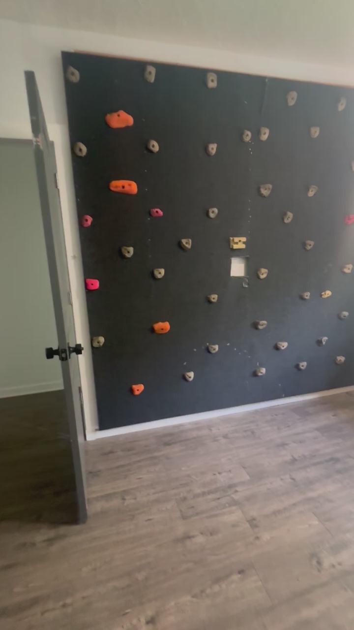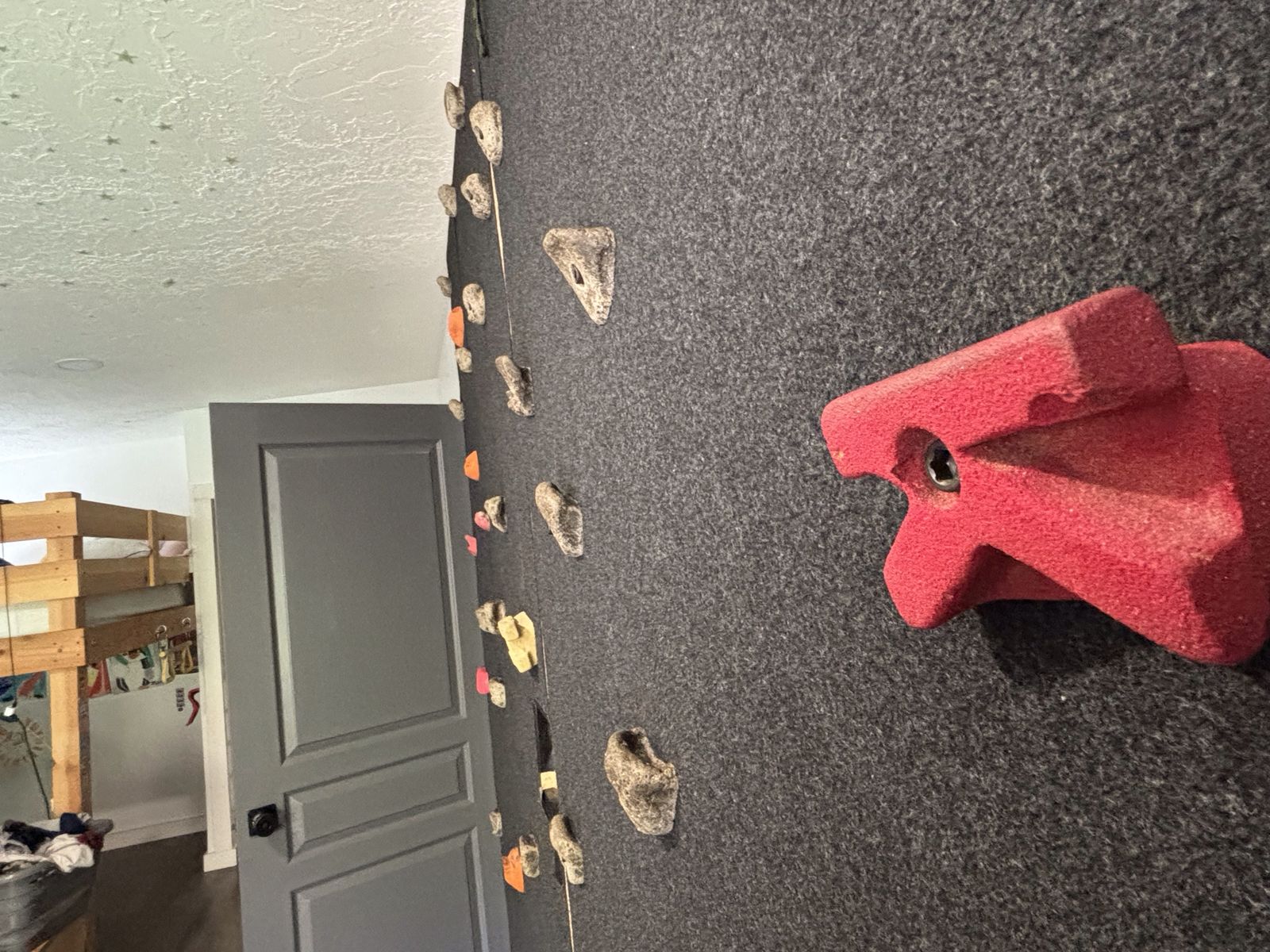 ZelleOver 56 grip holds and 8’ tall x 8’ wide. Perfect for kids or adults. Tight carpet for kids to never get splinters.