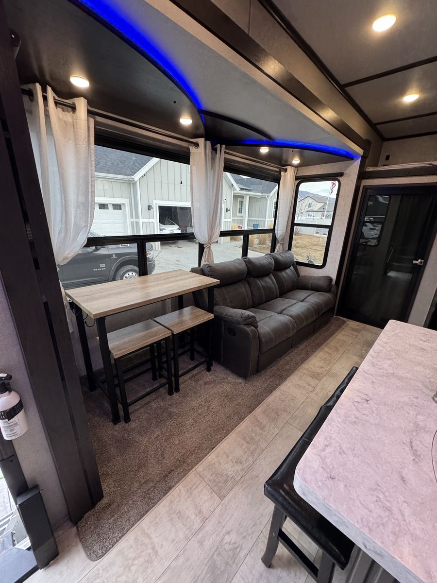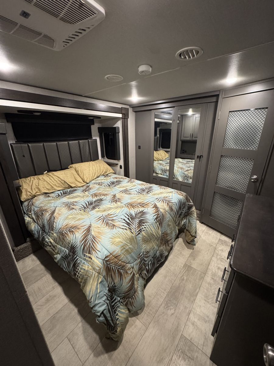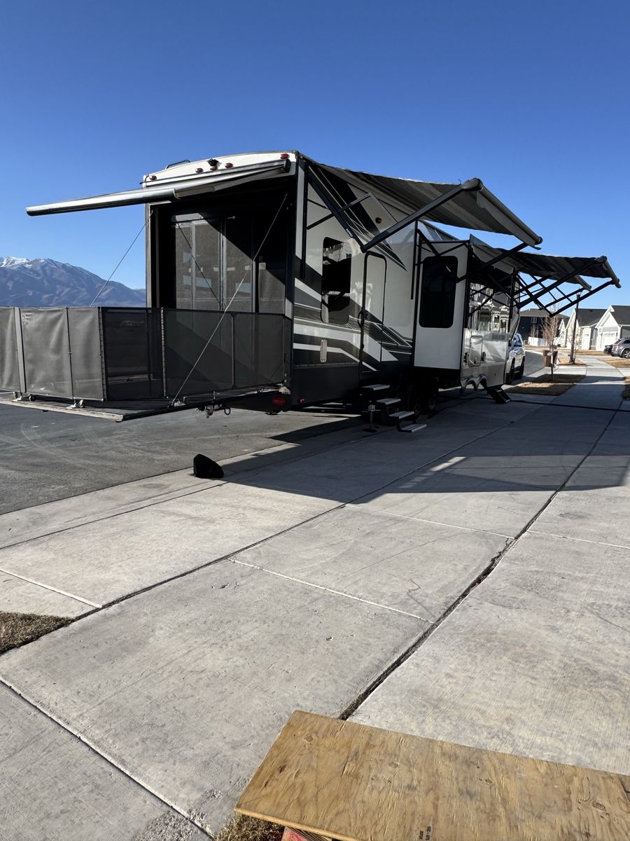 This camper is a pre-Covid built grand design in great shape. A few modifications. The RV fridge has been replaced with a real LG fridge. Has a multi speed water pump. The RV couch has been replaced with a real couch and the table has been replaced with a dinette. Real tiling in the bathroom. This fifth wheel has an Ownen 5500 generator that has always been maintained. This has two large marine batteries for longer 12 V life comes with an inverter it is not hooked up, but it is included. This fifth Wheel also has a custom built bumper in the rear that most fifth wheel this length do not come with.Everything works great. Everything‘s been well maintained. If you have any questions, please feel free to message. I will only work price with serious buyers.
