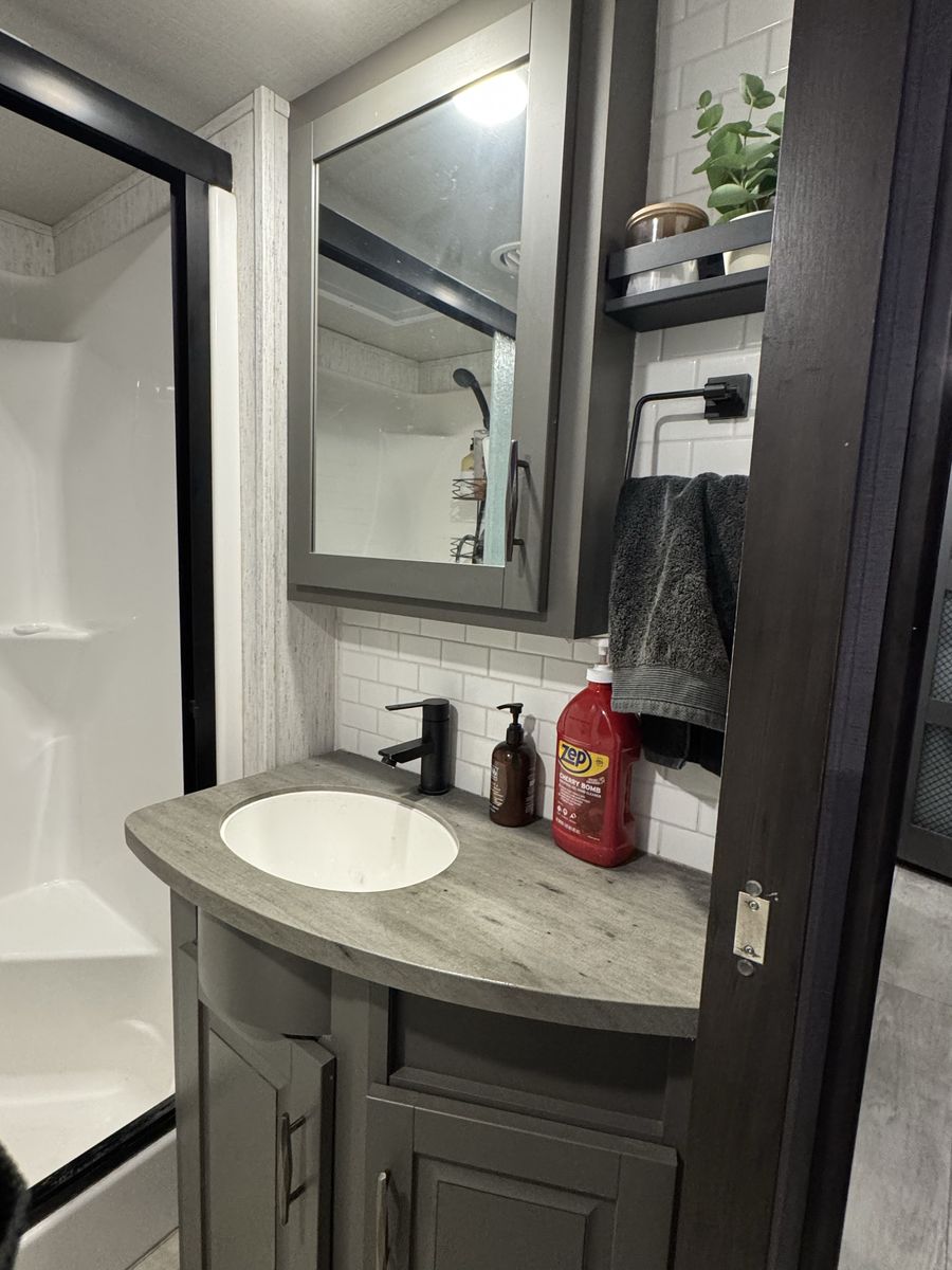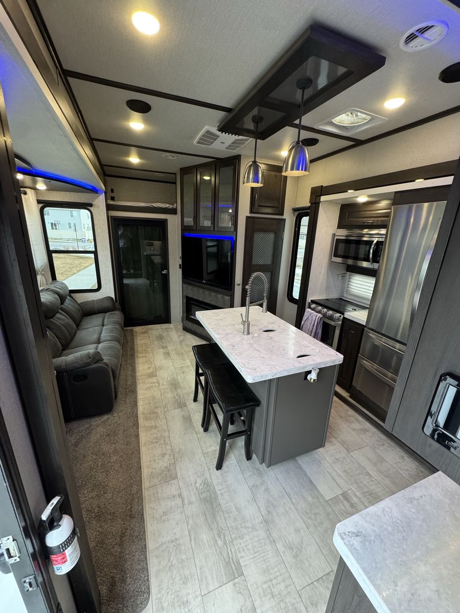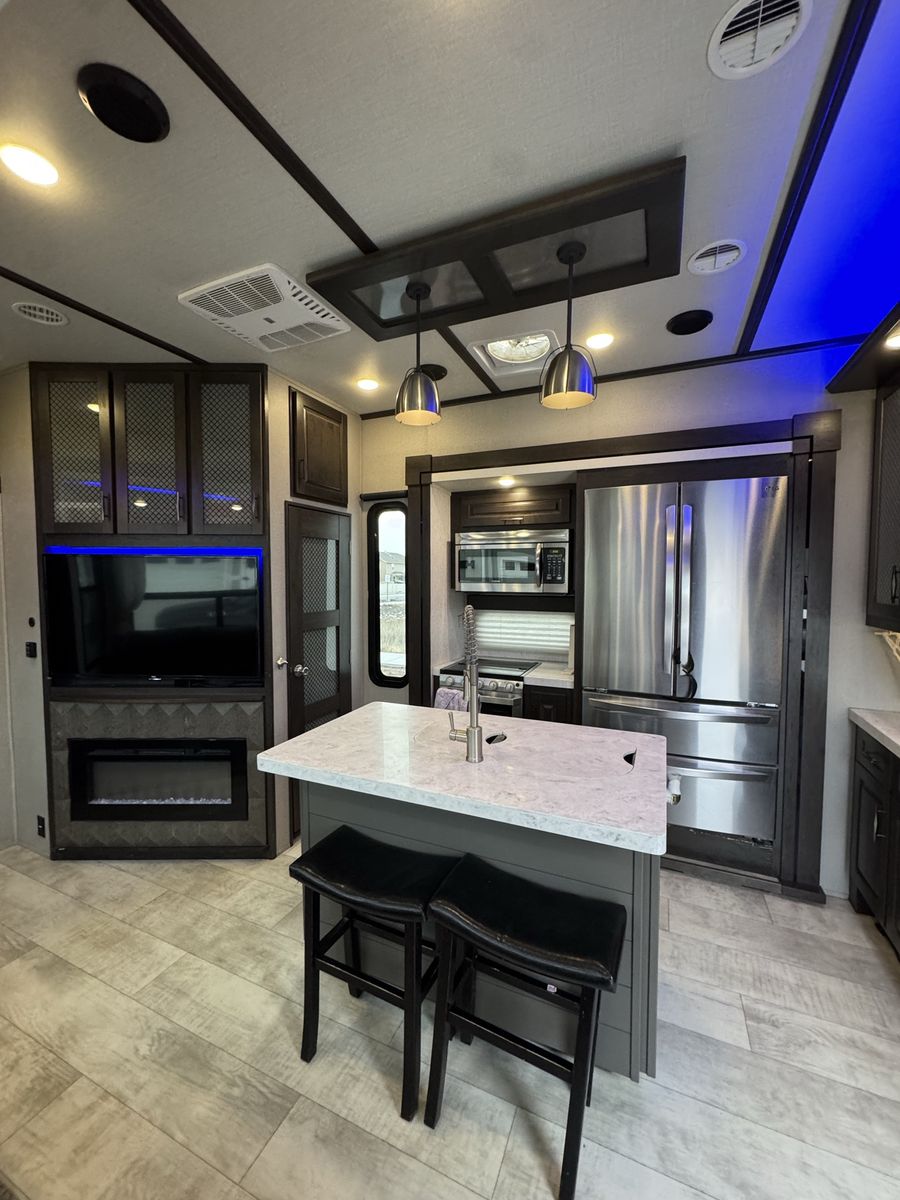 This camper is a pre-Covid built grand design in great shape. A few modifications. The RV fridge has been replaced with a real LG fridge. Has a multi speed water pump. The RV couch has been replaced with a real couch and the table has been replaced with a dinette. Real tiling in the bathroom. This fifth wheel has an Ownen 5500 generator that has always been maintained. This has two large marine batteries for longer 12 V life comes with an inverter it is not hooked up, but it is included. This fifth Wheel also has a custom built bumper in the rear that most fifth wheel this length do not come with.Everything works great. Everything‘s been well maintained. If you have any questions, please feel free to message. I will only work price with serious buyers.