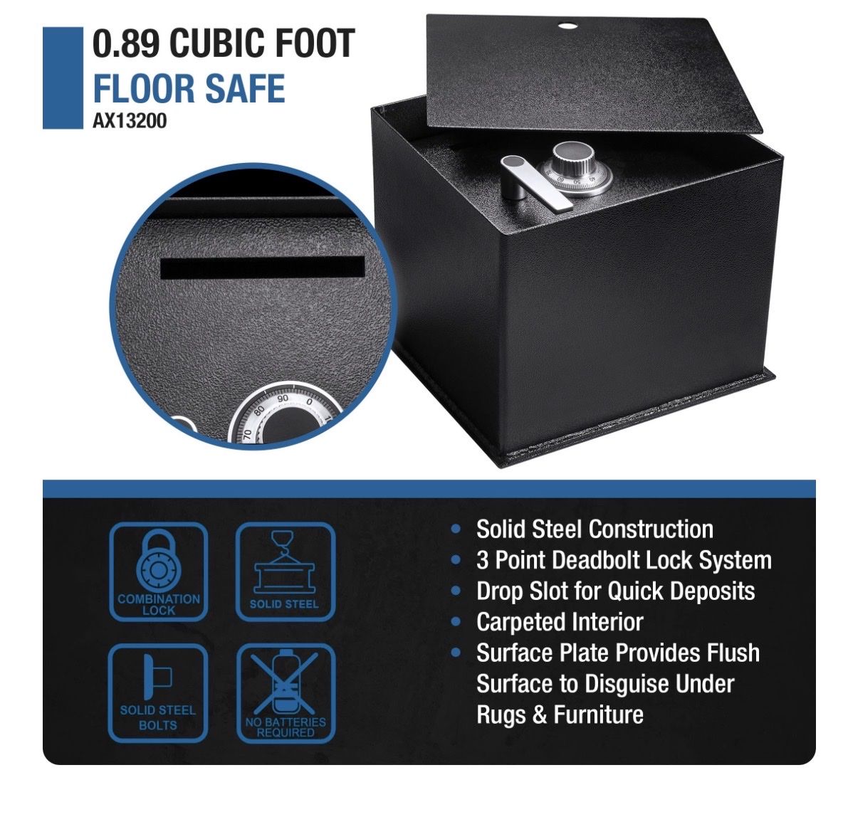 GooglePayThe 0. 89 cubic ft. Floor safe by Barska offers a discreet way of storing valuables and important belongings. This solid steel floor safe is installed by creating a hole in the foundation, inserting the safe, and then filling the remaining space with Cement. Once installed, the Barska Underground floor safe sits level with the surrounding surface, allowing it to be covered by other items such as a rug. A drop-slot allows the user to quickly deposit important items into the safe without needing to open it. The 0. 89 cubic feet of storage space provides enough room to secure important items such as money, jewelry, compact electronics, important documents, and much more. This is a 700$ safe and the only reason I’m getting rid of it is because my father installed one while I was gone because he didn’t know I got one so this is new never put in the ground. The combo has been changed but I currently have it open and I have the safe key and all the instructions