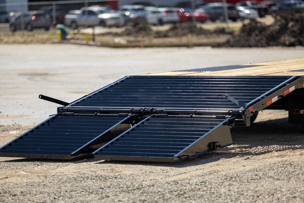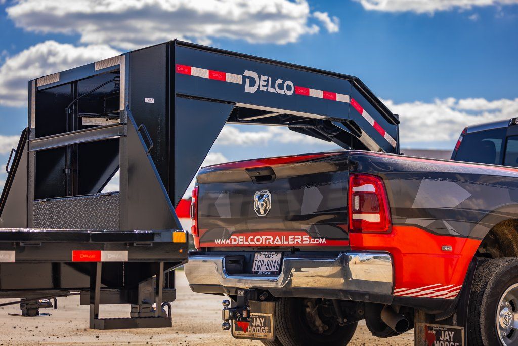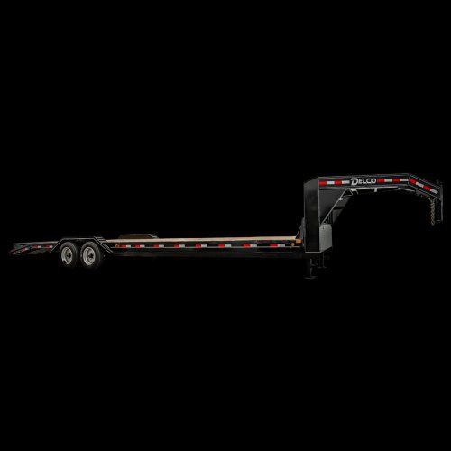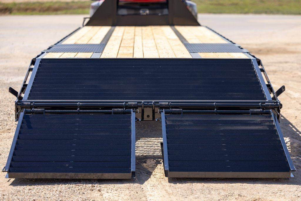 ZelleBig Tex 2018 model year 40' Gooseneck Flatbed 5' Mega Ramps for Equipment loading Dual 12K Jacks deep well Lockable front storage box Dual Lippert 12K Dually Axles Side Step and handle Spare Tire Included Wider Full Size Stake pockets and extra thick gauge Rubrail All led lights Matching Heavy duty mud flaps Framework has upgraded Larger Torque Tube And bridged Framework Handles really well compared to other Brands thick plates over Tires All Powfercoated in House
