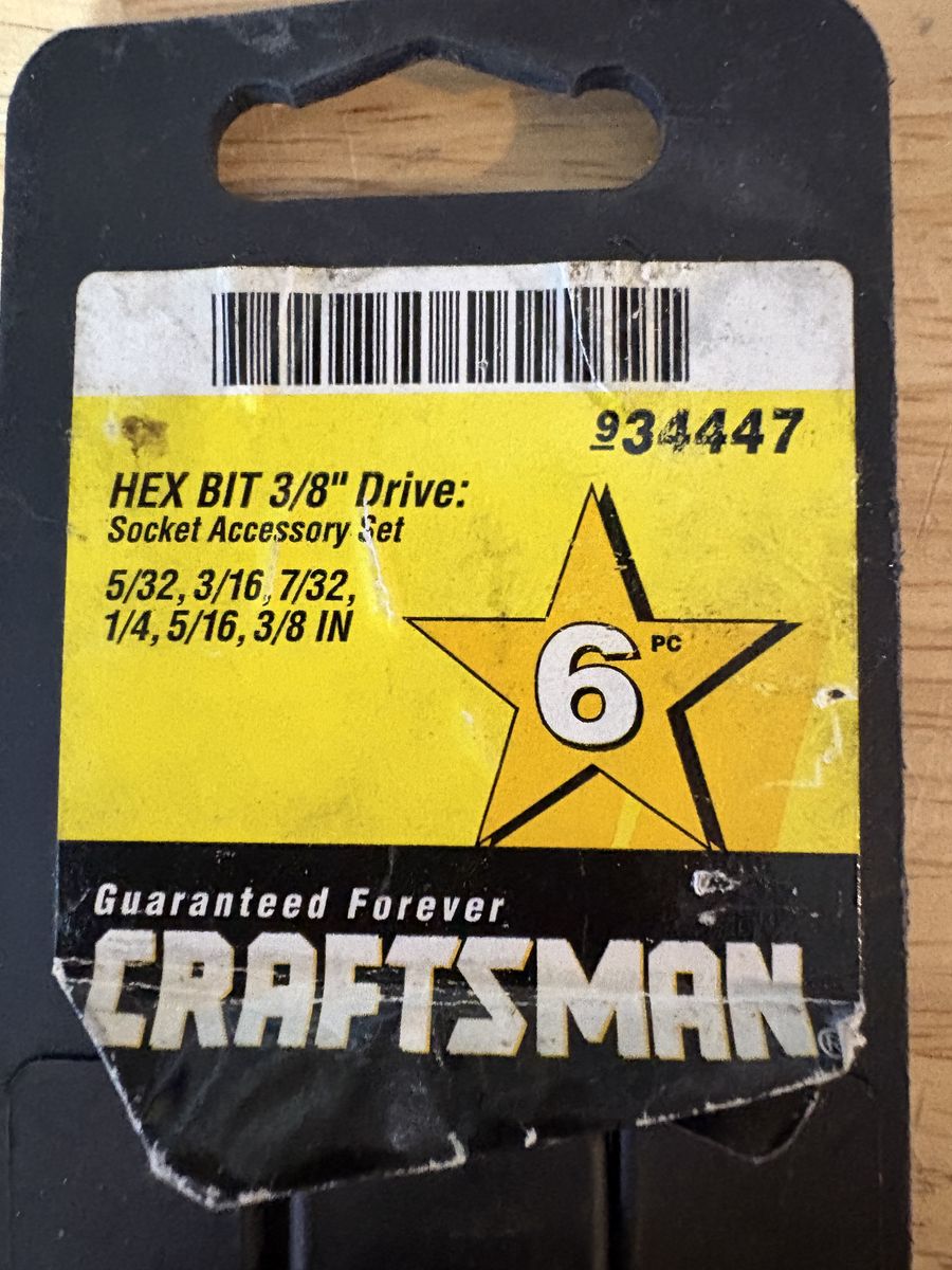 PayPalNew in package Craftsman Made in USA 3/8" drive hex bit set imperial / fractional units.