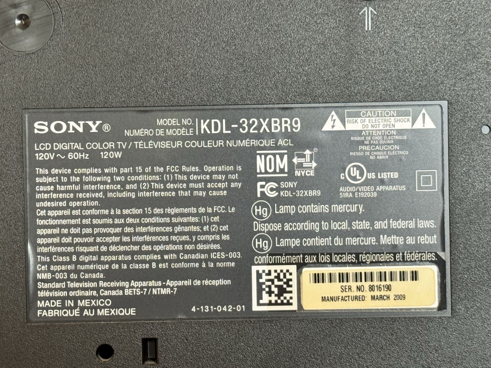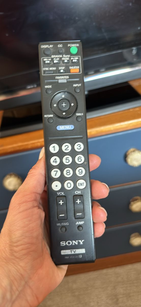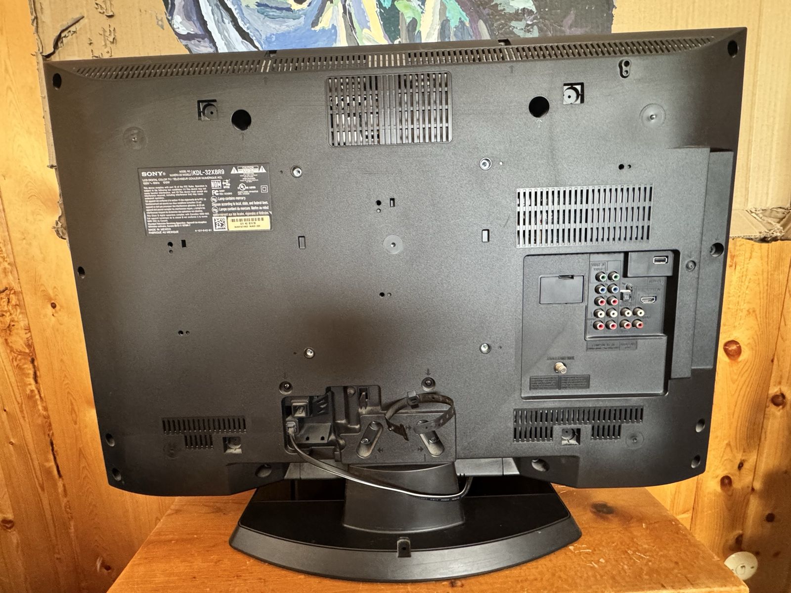 Sony tv with remote. Not an internet tv. Used in guestroom. Can use for a monitor or video game systems. . 37” diagonal with trim. See details online for more info. Flat screen