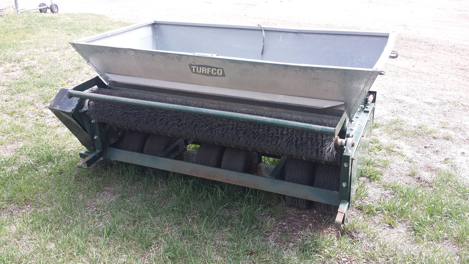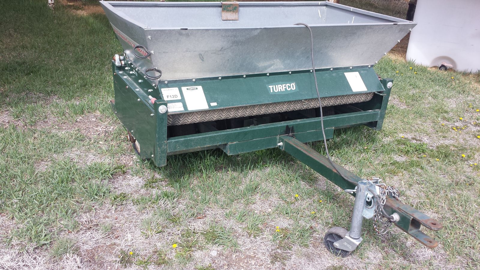 turfco top dresser for golf courses and other things. in good working order with new engage/disengage switch . tires are in decent shape , aprons and brushes are too a couple minor dings but overall good condition