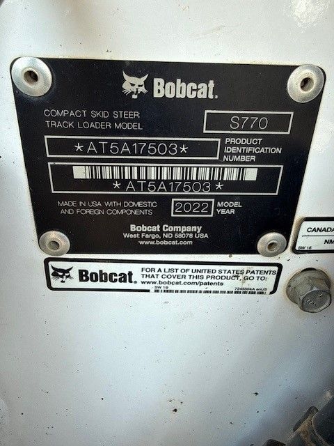 2022 Bobcat S770 Skidsteer Original Owner Approximately 2205 hours High flow hydraulics 36.6gpm 2 speed 92 HP Operating weight 9300lbs Tier 4 Selectable joystick controls Clean machine runs great Serviced more frequent than manufacturer recommendations