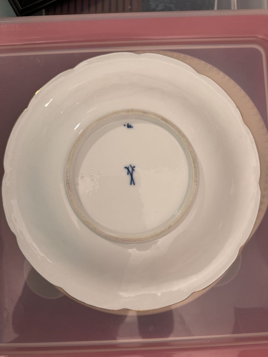 The reverse bears a classic crossed swords style mark reminiscent of the renowned Meissen Porcelain Manufactory, one of the most prestigious names in porcelain history. While many pieces of this era were produced in the celebrated Dresden tradition, this mark and design reflect the influence of high-end craftsmanship that made German porcelain world-famous.