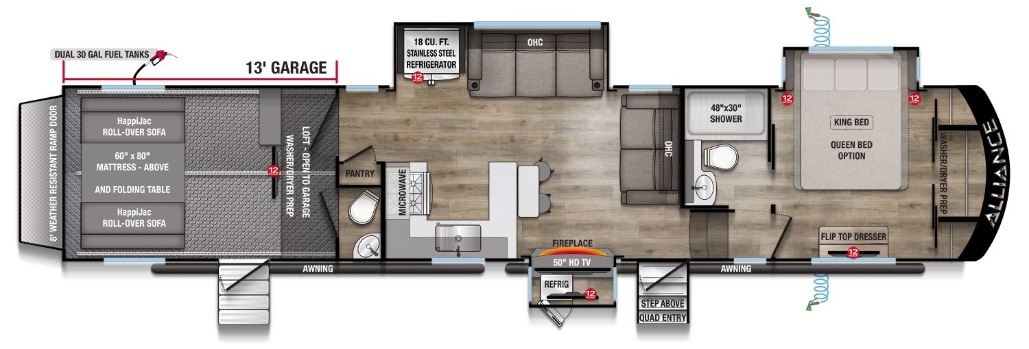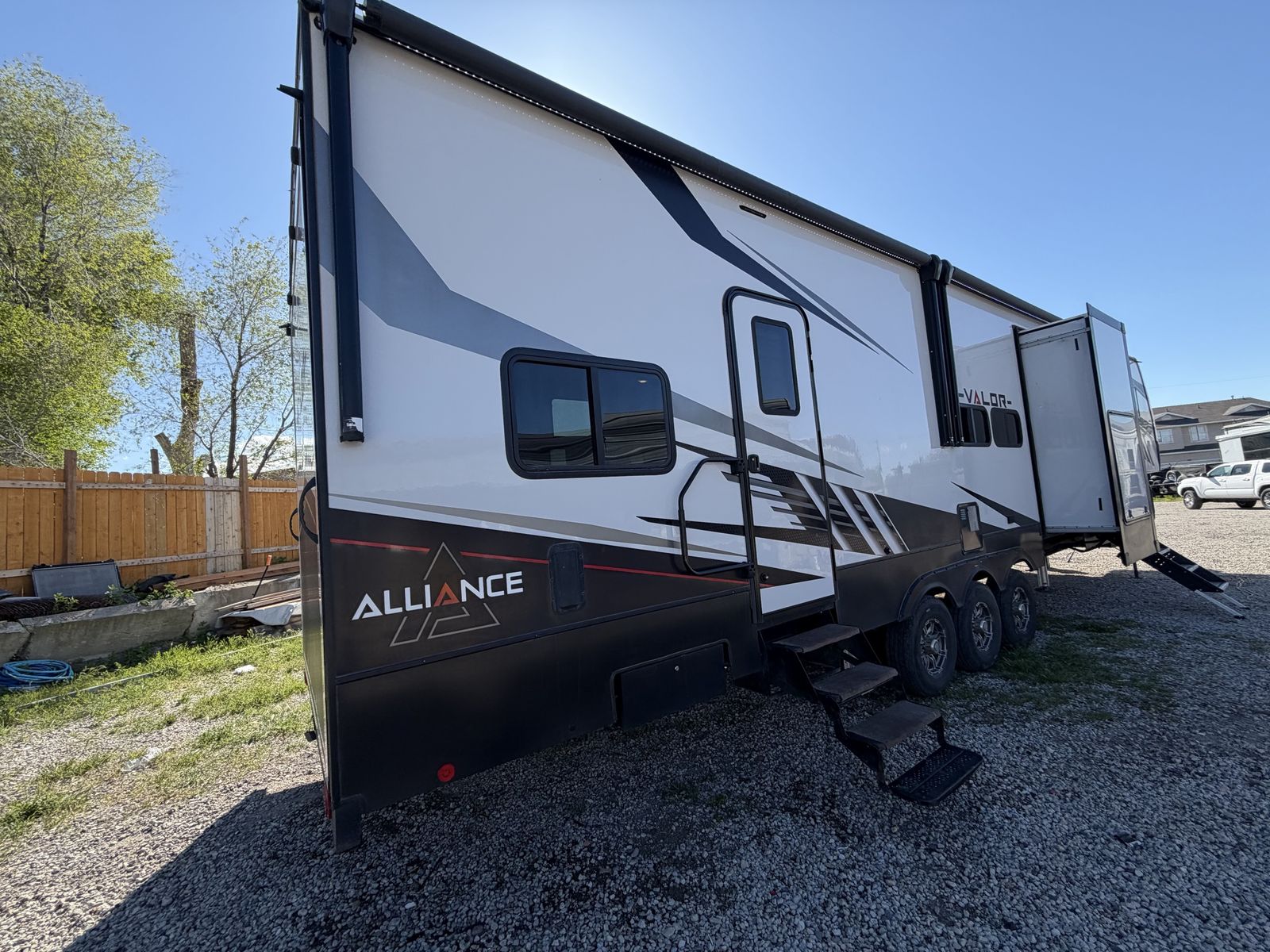 Cutting my losses and letting this go for super cheap! 2023 alliance valor 40v13 with a salvage title due to interior burn. Batteries under the sofa caught fire causing mostly smoke damage. All things are functional. It did not destroy any electrical behind walls. All this trailer needs is some new lights and some minor touch ups! 30k takes it home! What you see is what you get!