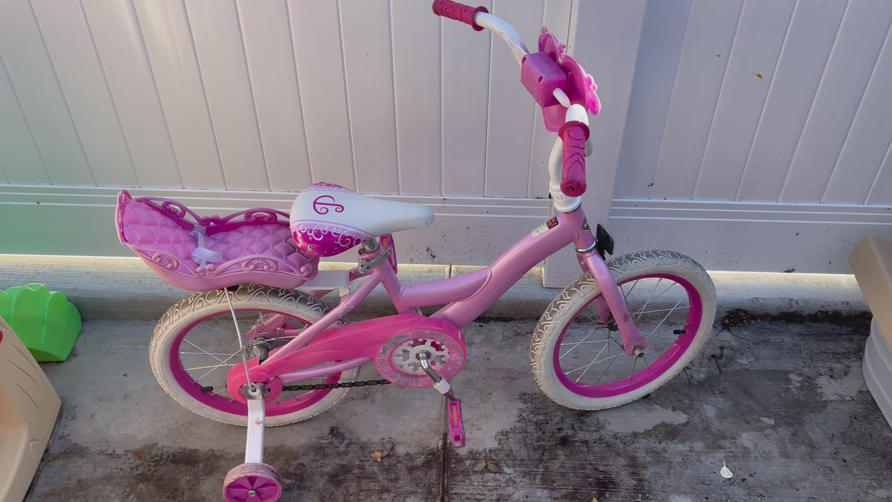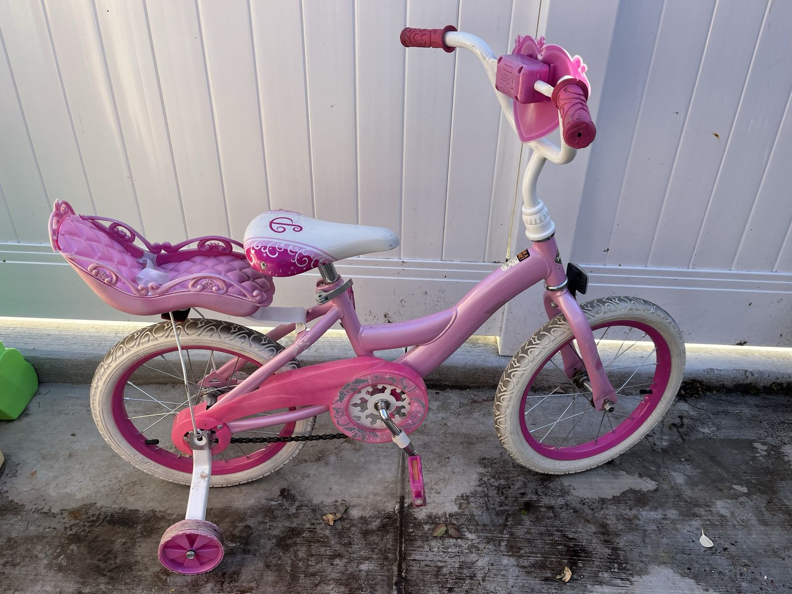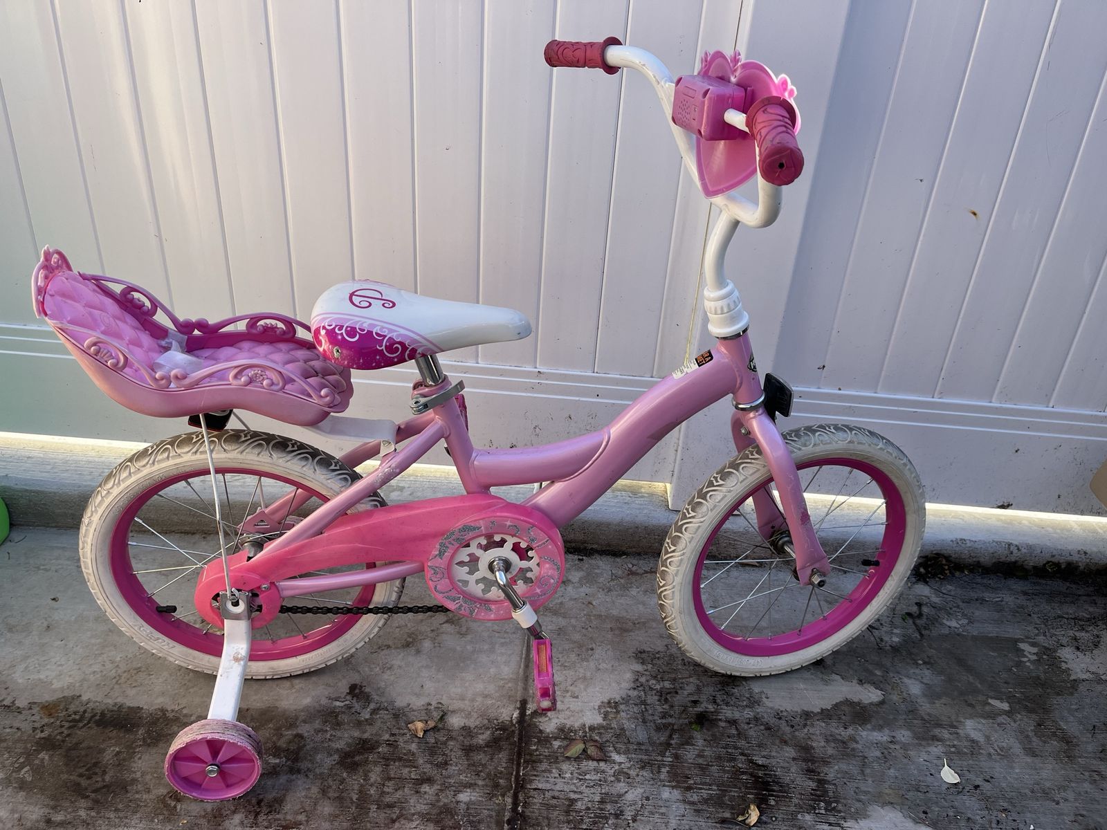 Kids, Disney princess 16 inch bike with training wheels the seat does have a tear in it, but works just fine