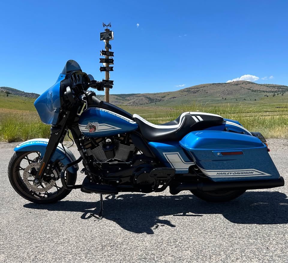 Fast Johnnie Street Glide ST Limited Edition . Features LED headlights and black and white Le Pera gel GT two-up seat with adjustable Back rest . Engine is 117 cubic inches. Comes with . Rinehart 4 1/2" HP45 Black and Bronze Slip-On Mufflers, After market Tall bars, Heated Grips, Klock Werks Windshield, HD Fering bag. 1,920 miles