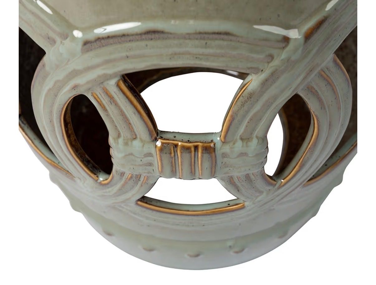 Balkene Home 63614 Large Medallion Ceramic Indoor Outdoor Garden Stool Table Perfect As Plant Pedestals, Flexible Seating Constructed of Fired Porcelain Ceramic - Olive Jade Green