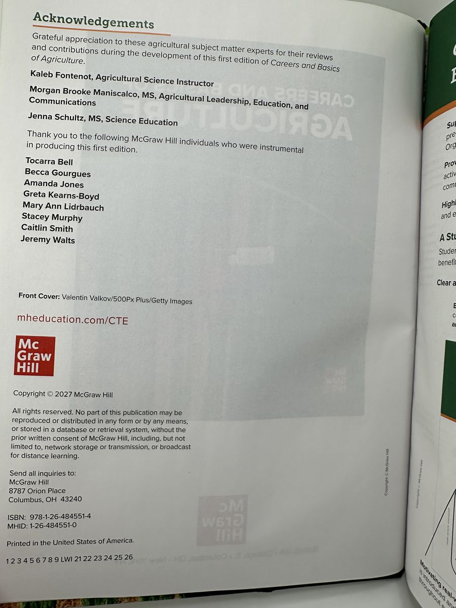 ApplePayCareers and Basics of Agriculture (First Edition) introduces students to the essential concepts of modern agriculture and related career paths. Published by McGraw Hill, this textbook explores plant and animal science, agribusiness, sustainability, and emerging technologies in agriculture.