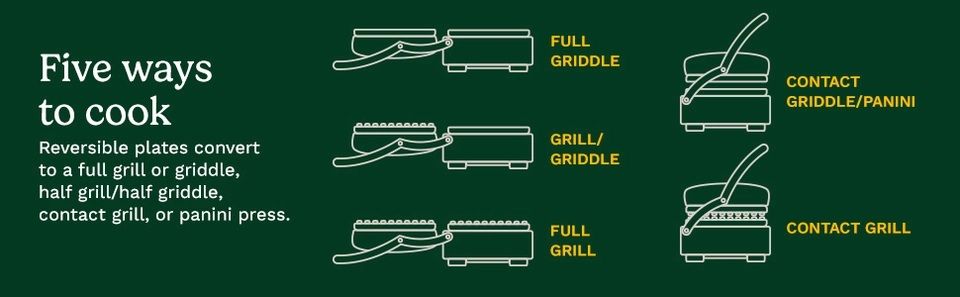 Grill, griddle, half grill/half griddle, contact grill, or panini press for everyday versatility.
