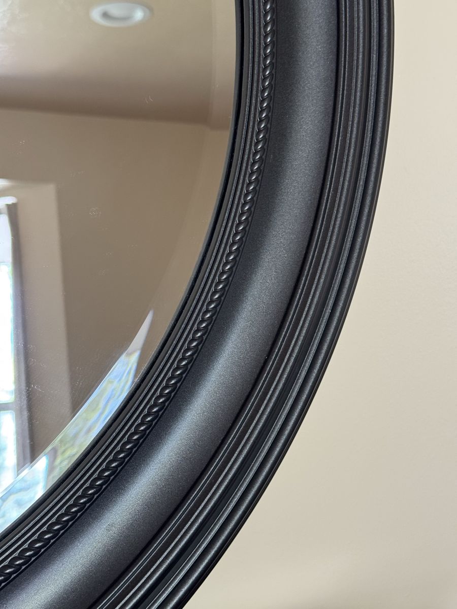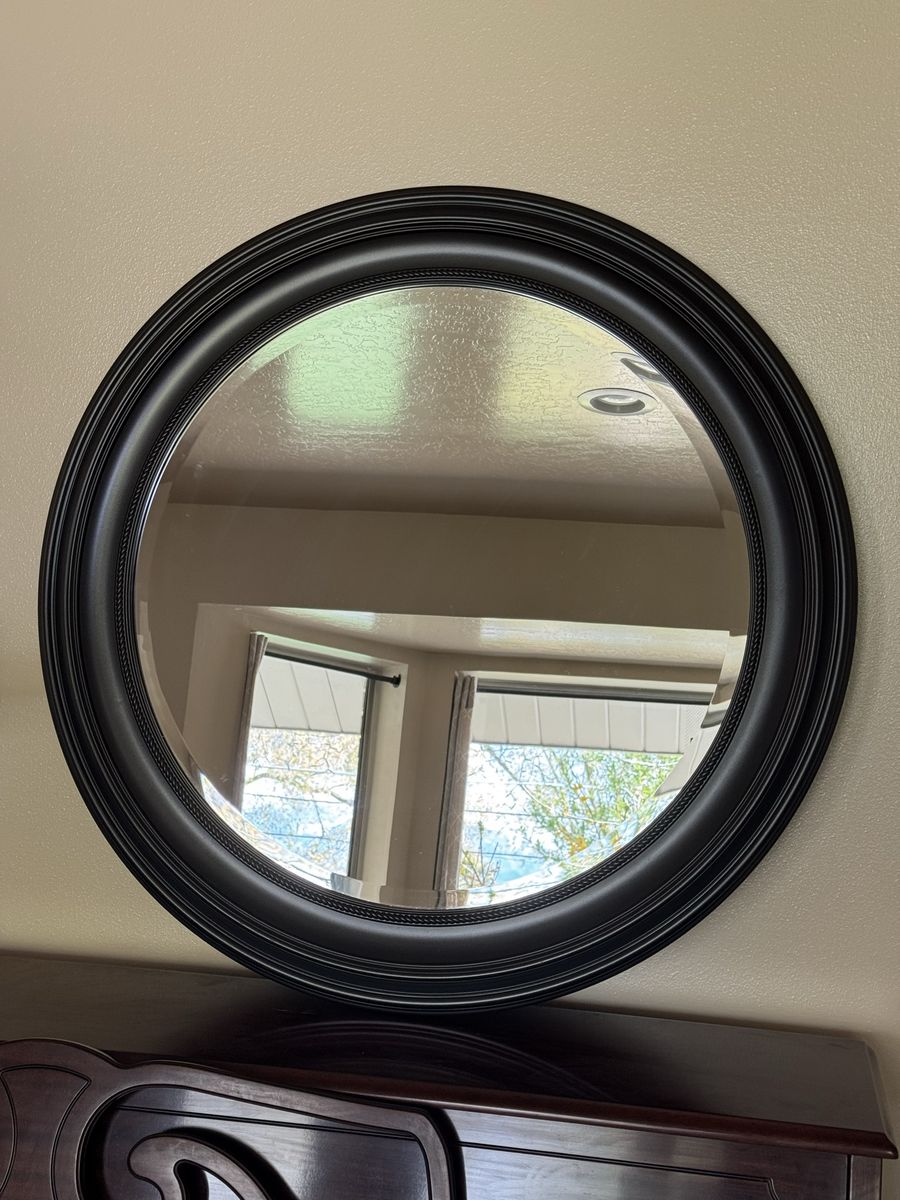 Large Circular mirror! In great condition color is brown/bronze. Only selling because we remodeled the bathroom it was in. Dimensions are 33” diameter.