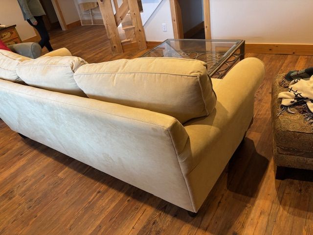 Haverty's fabric couch. Good condition. Comes with four pillows.