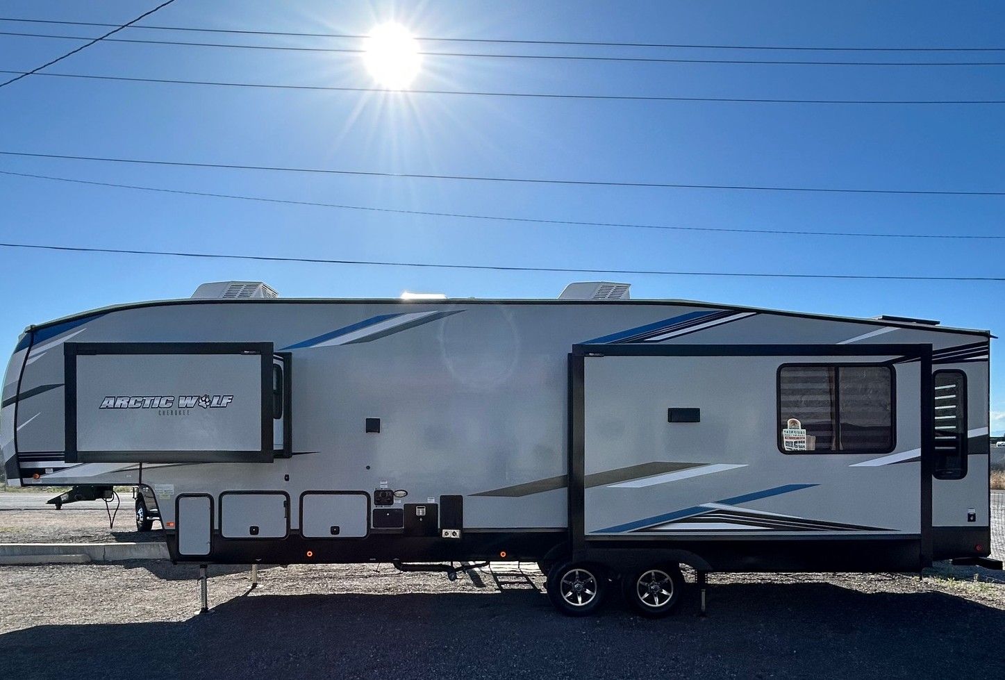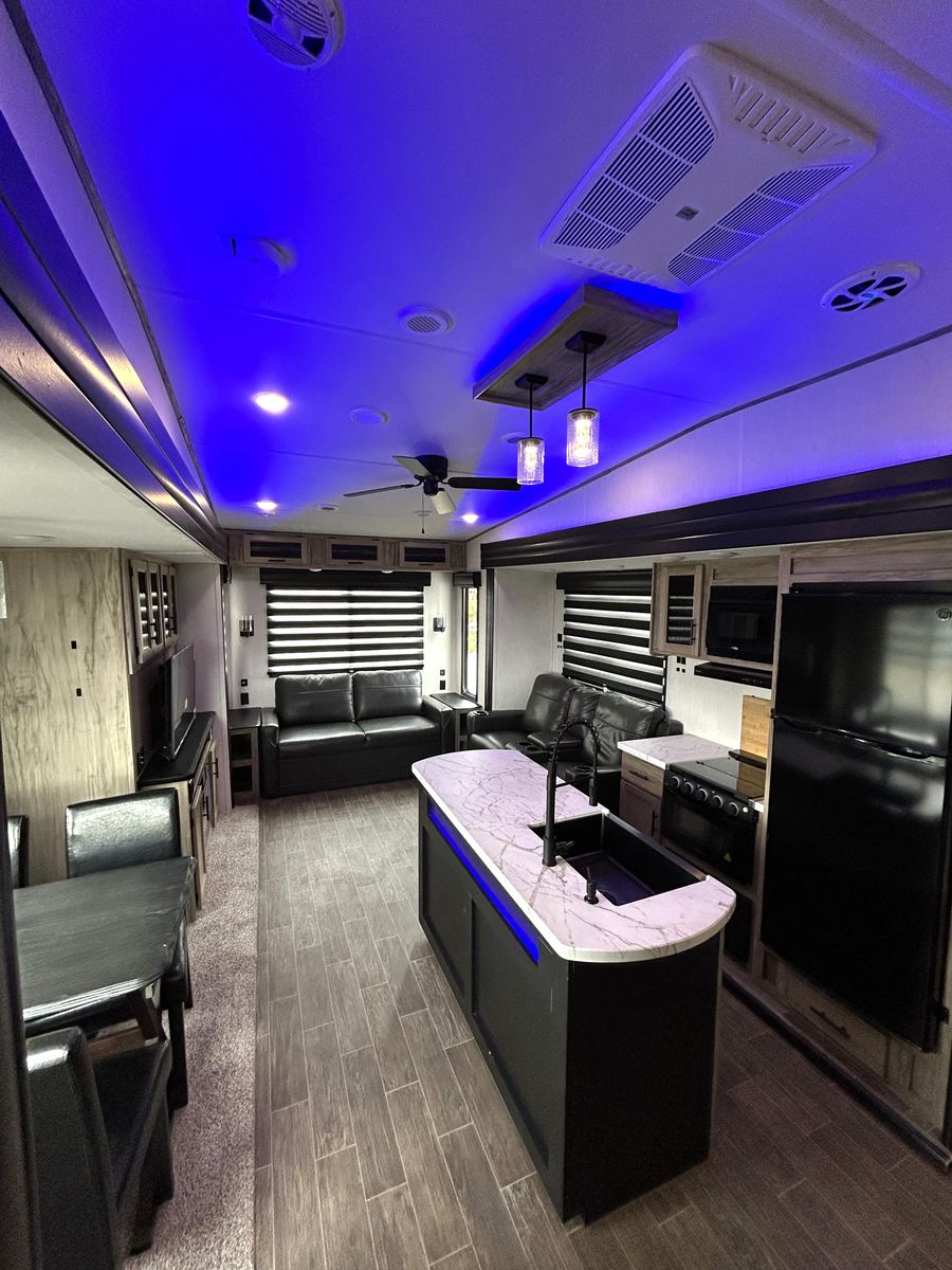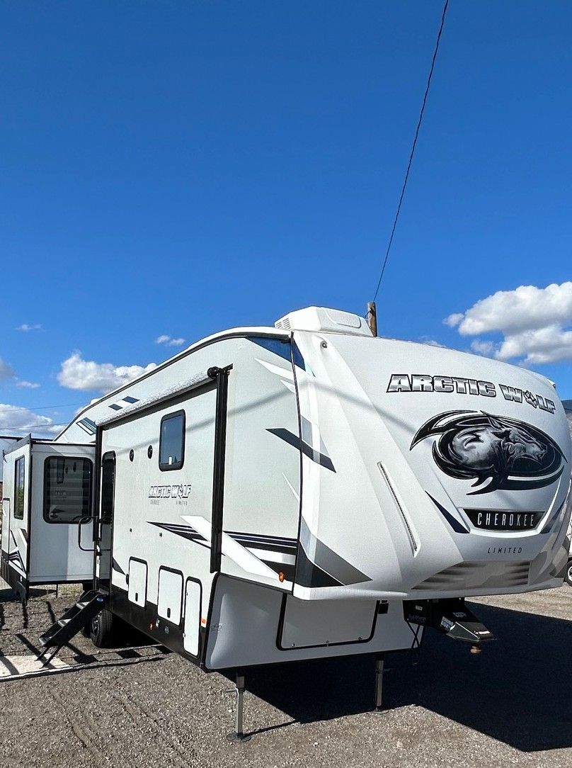 Venmo2022 Arctic Wolf Cherokee Limited 3550 Suite, 38 Ft, sleeps 4, Four Seasons, Wired for solar with two panels, 3 slide outs, Washer/Dryer hookups, 2 A/C Units, One button self leveling jacks, electric awning, new mattress, new battery, New Awning Fabric, CLEAN TITLE, Everything Works Properly, lots of storage, super light, only weighs 9570 lbs. Priced to sell quickly.