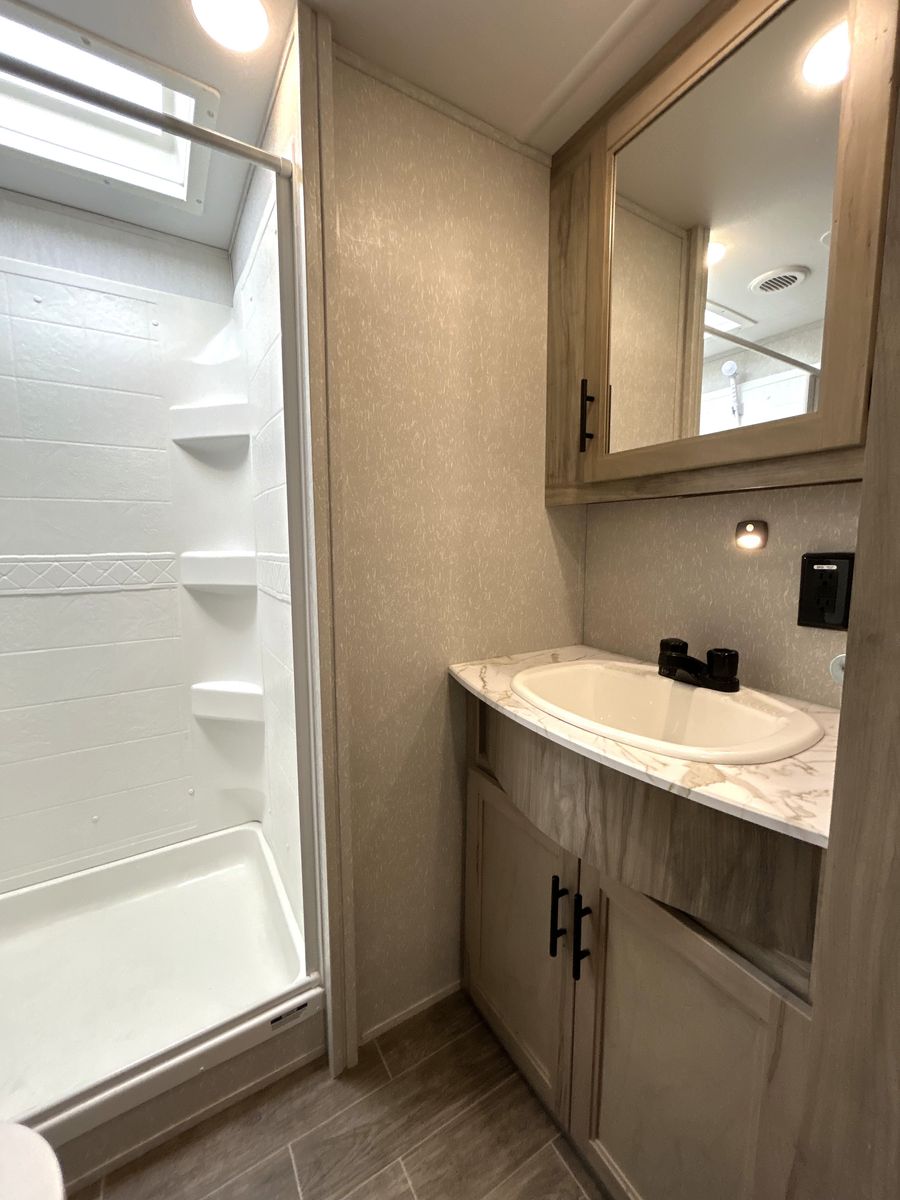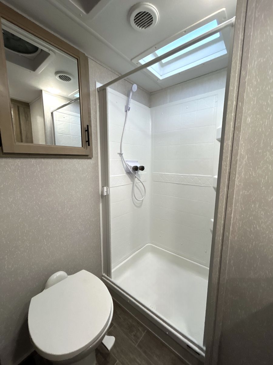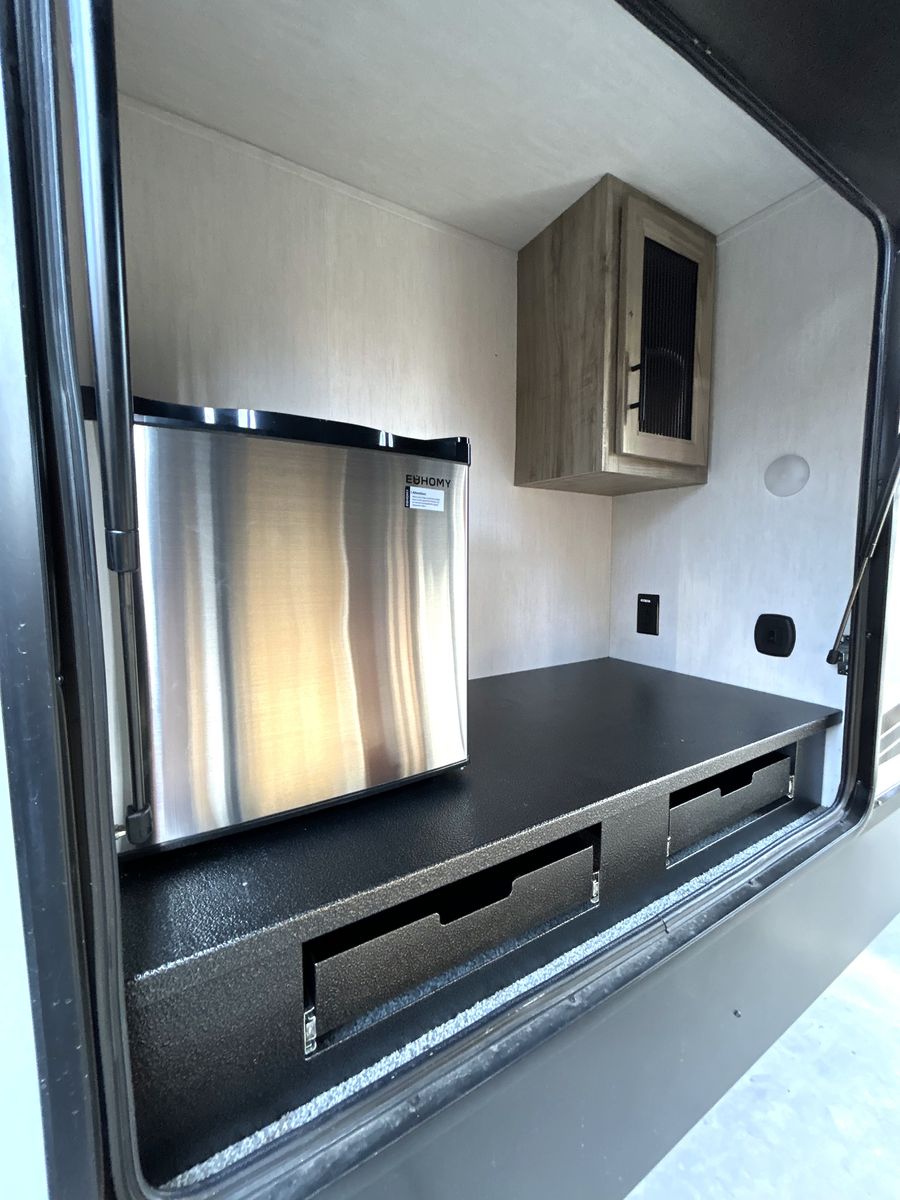 The Arctic Wolf Series from Forest River is known for its focus on four-season camping, featuring better insulation in the walls, roof, and floor to help keep the interior warm during winter and cool during summer.