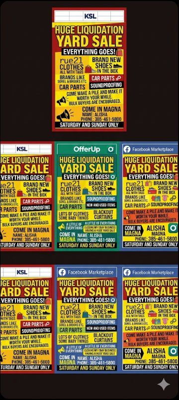 GooglePayMassive Liquidation Yard Sale: eBay Overstock & More! Get ready for an absolute treasure hunt! We are clearing out a massive inventory of liquidation, brand-new, and quality used items. Whether you're a reseller looking for eBay-ready stock or just hunting for a deal, there is something for everyone. What’s On The Lot: Tons of rue21 Clothing: Racks upon racks of trendy apparel. We have a huge selection of brand-new-with-tags (NWT) and gently used pieces in various styles and sizes. Car & Automotive Gear: Essential parts and accessories, including oil filters, LED headlight kits, jumper cables, floor mats, and car cleaning kits. Soundproofing & Home Acoustics: High-quality acoustic foam panels, sound-dampening blankets, and weather stripping perfect for home studios or noisy apartments. Blackout Window Solutions: Keep the light out and the cool in with various blackout curtains, thermal liners, and suction-cup window covers.
