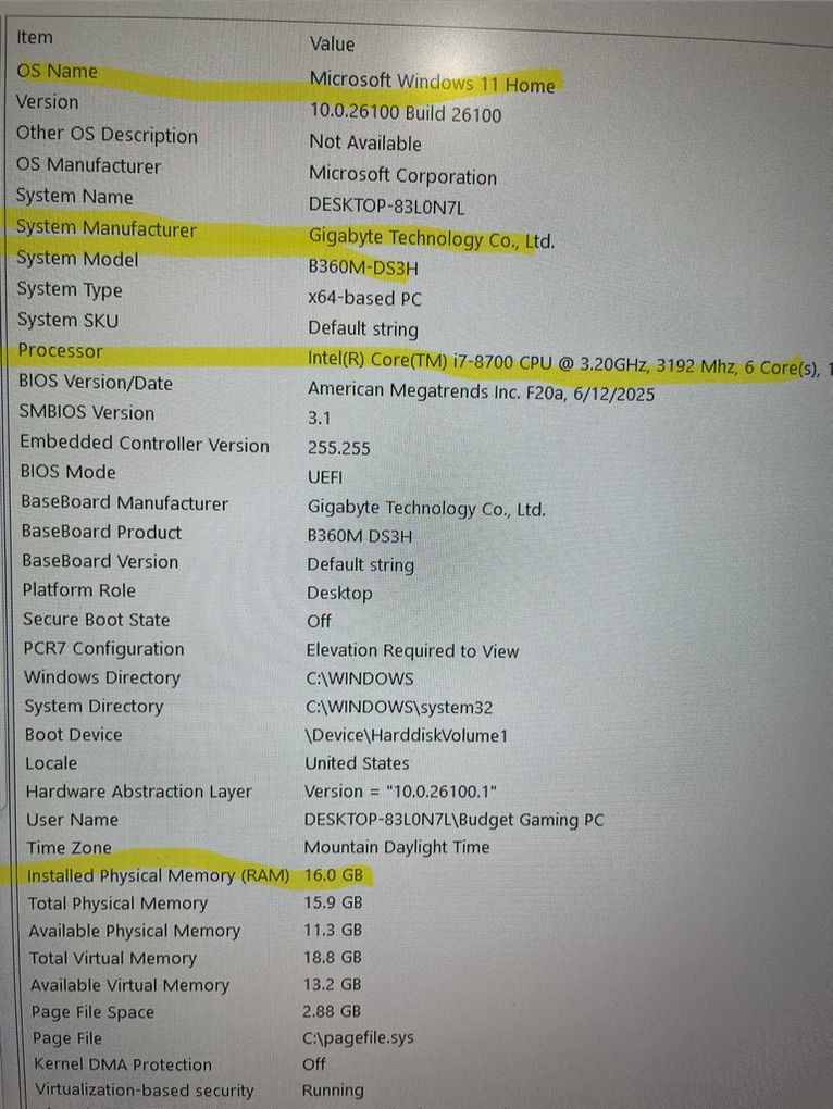 Specs: -Inwin ATX case -CPU: Intel i-7 8700 (Comparable to Ryzen 5 3500) -GPU: RX 5500 XT OC ed (8 GB) -RAM: 2 sticks of Gaming ram (16 GB total) -SSD: 500 GB Western Digital -PSU: 600 watt thermaltake white -Motherboard: Gigabyte B360M-DS3H -OS: Fresh Install Windows 11 home activated -Wifi and Bluetooth card