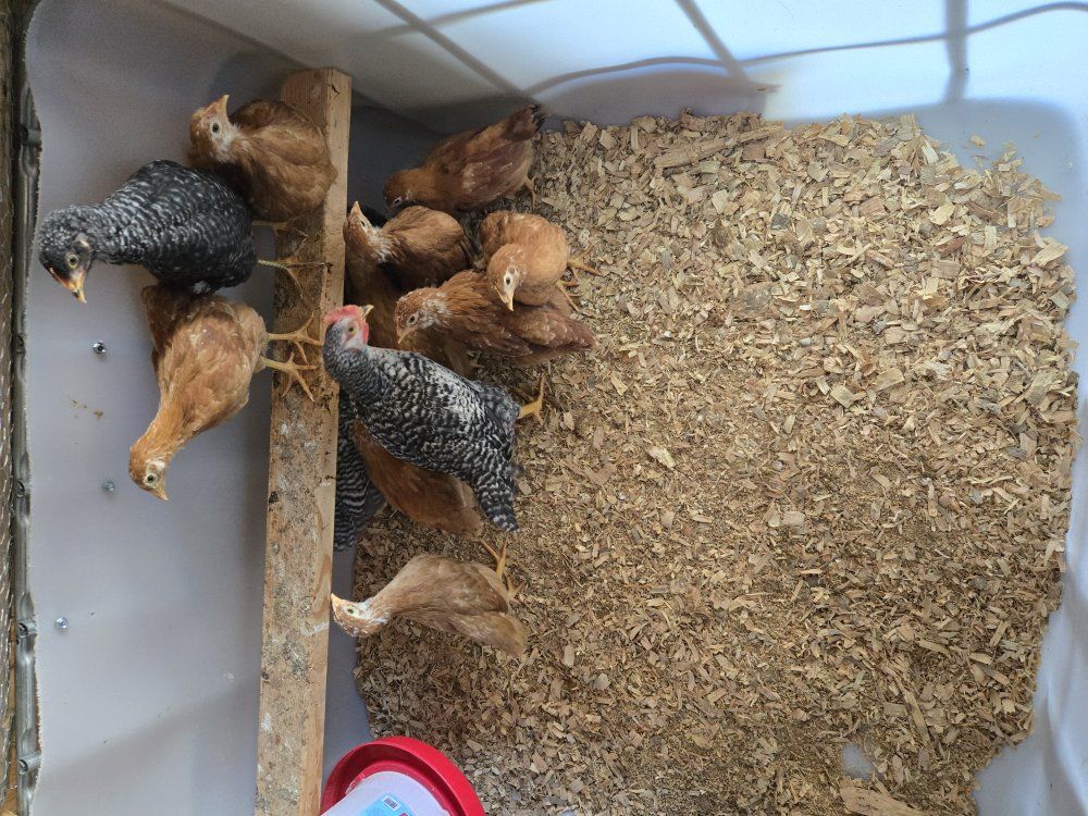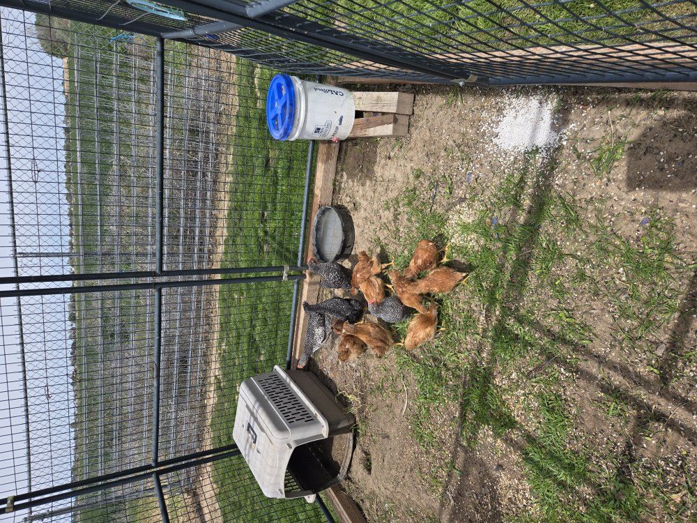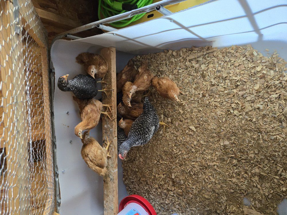Venmothese chicks are 7 - 8 weeks old. they are fully feathered and ready to go in a out door coop.
