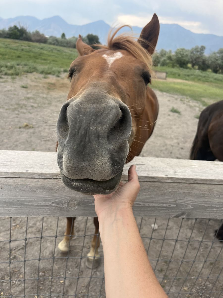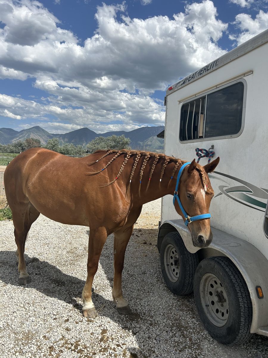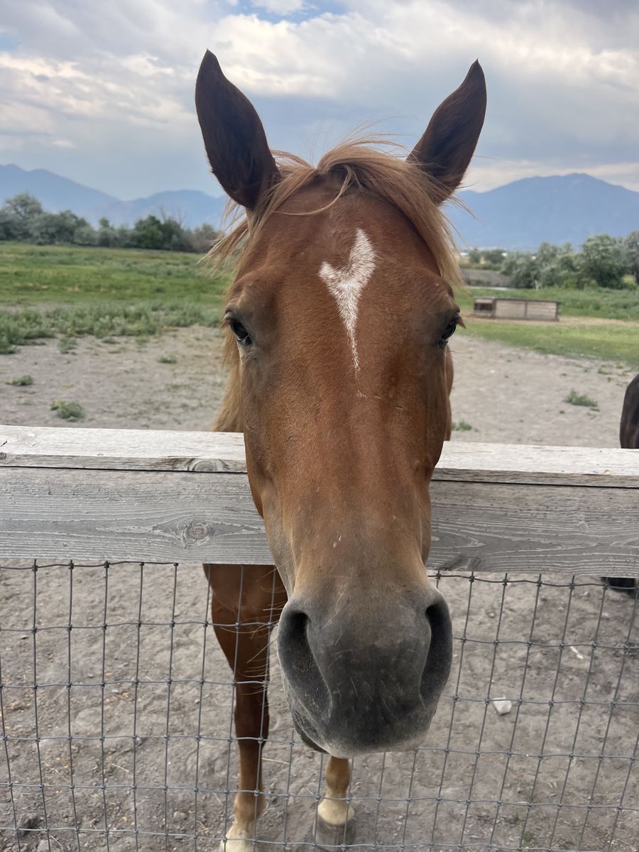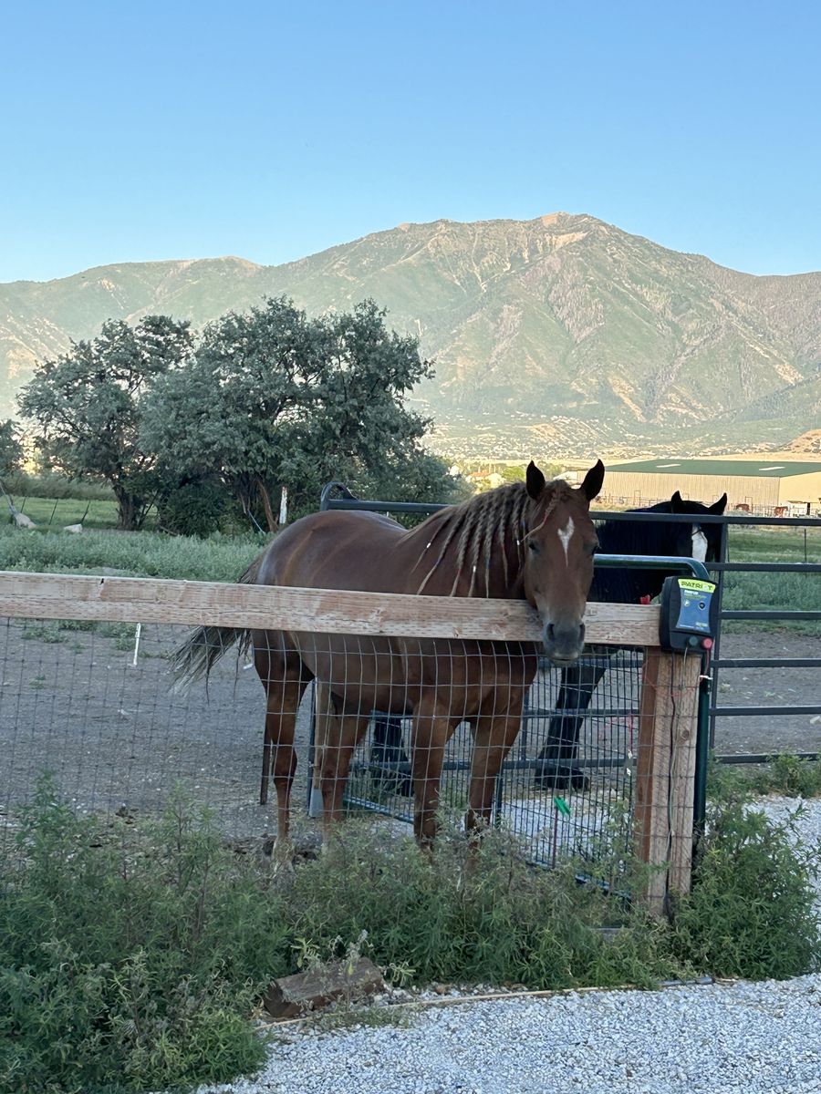 Fern also loves the mountains. She is the best horse this grandma has been on up Payson Canyon. She knows exactly where her feet are and can move out. Grade quater horse about eight years old. She is the boss mare in our herd, but a nice boss compared to our last boss hahaha. Safe and sane. Sweet and gorgeou! About 15-15.1 hh. Ride her bareback in the parking lots. We are her second owners. She was a HS rodeo barrel horse before we got her. She is also barefoot!